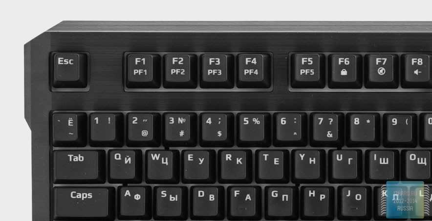 Витоге для версии клавиатуры срусской раскладкой используется типовое проверенное решение— окрашенные колпачки слазерной гравировкой символов. Засчет хорошо подобранного шрифта иполужирного начертания все символы прекрасно считываются.