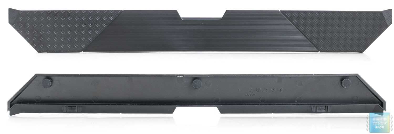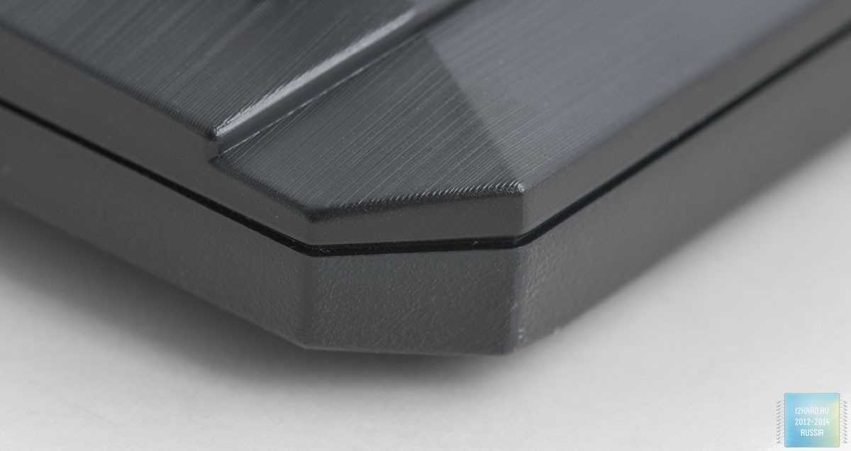 Поаналогии склавиатурой, центральная часть стилизована под шлифованный металл, акрая— под рифленый, поцентру верхнего края сделана выемка, вкоторую вписывается логотип, размещенный наклавиатуре.