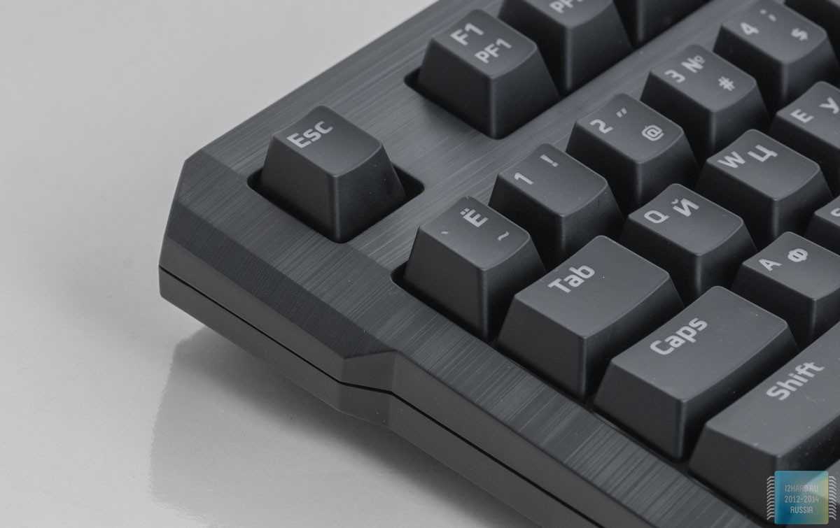 Клавиатура устойчива, корпус непрогибается. Верхняя панель клавиатуры очень приятна потактильным ощущениям. Поверхность колпачков гладкая, отпечатки пальцев становятся заметны только после продолжительного использования, нолегко убираются.