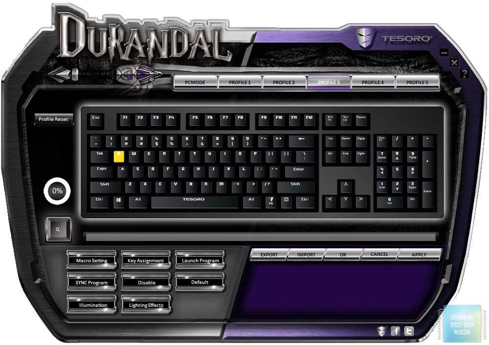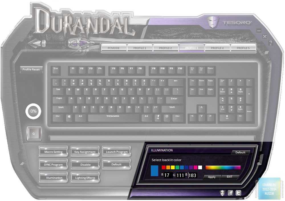 Поэтим ключевым моментам механическую клавиатуру Tesoro Durandal Spectrum критиковать особо неполучается, кроме неудобства иограниченности утилиты, ноиданный аспект временный, так как, согласно информации отпредставителя компании, обновленное программное обеспечение было уже представлено напоследней выставке Computex ибудет доступно вближайшее время.