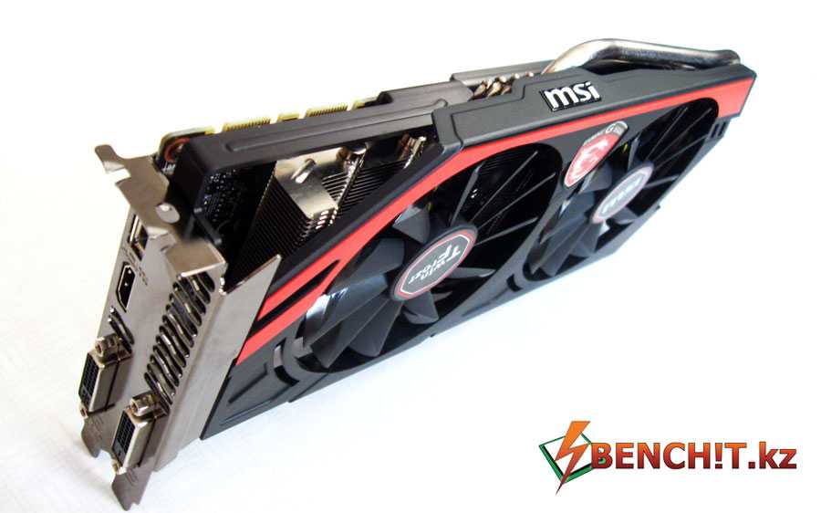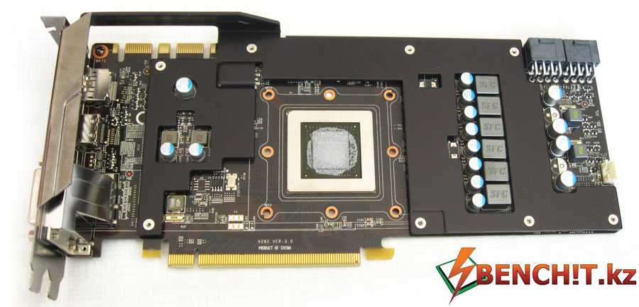Монтажная планка несет на себе такой же набор портов, как у GTX 780/TITAN и старших представителей линейки GeForce 600: два разъема Dual-Link DVI, полноразмерные версии HDMI и DisplayPort.