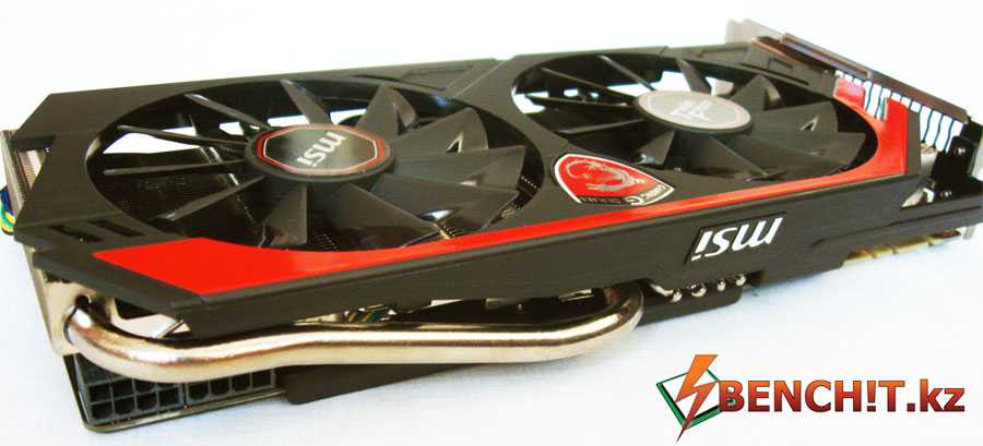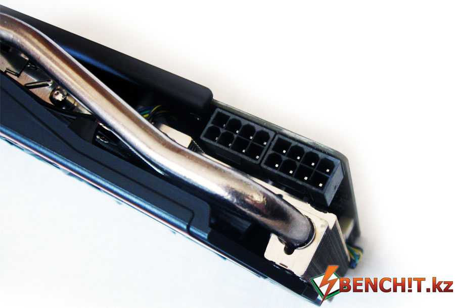 В верхней части видеокарты нельзя не заметить внушительную теплотрубку из никелированной меди.