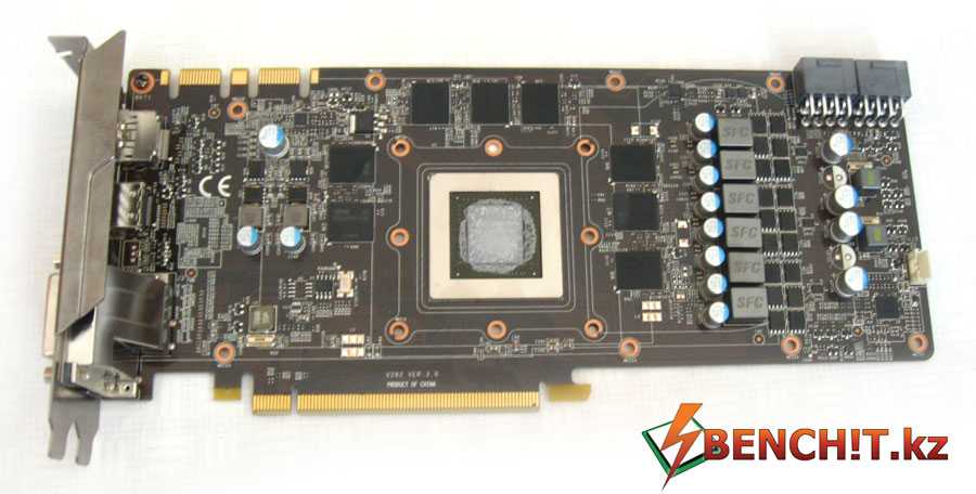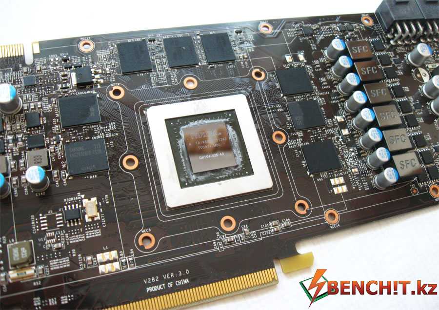 Графический процессор имеет маркировку GK104-425-A2. В случае с GTX 680 использовался чип с другой маркировкой — GK104-400-A2. В чем различия этих графических процессоров на архитектурном уровне, пожалуй, знает только NVIDIA, а нам лишь остается предположить, что GPU, в случае с GTX 770, был подвергнут некоторым оптимизациям, либо другим критериям отбора, что и способствовало повышению рабочих частот GTX 770 относительно GTX 680.