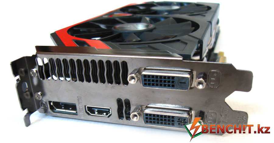 На интерфейсной панели нет ничего необычного: имеются два DVI (один DVI-D, другой DVI-I), HDMI и DisplayPort, а также радиаторная решетка для выброса горячего воздуха за пределы корпус