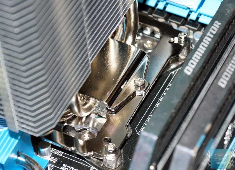 Если справа (относительно сокета) кулер не перекрывает разъемы оперативной памяти, то слева проблема имеет место быть. Конечно же, с этой проблемой вы не встретитесь, например, в случае с платформой 1150 или AM3+, так как разъемы расположены только с одной стороны — справа. У 2011 же, как известно, разъемы расположены по обе стороны, поэтому радиатор перекрывает доступ к 3 ближайшим к сокетуслотам с левой стороны. Установить модули туда можно до установки радиатора, но стоит иметь в виду, что модули с высокими радиаторами, как мои Corsair Dominator Platinum, туда однозначноне влезут.