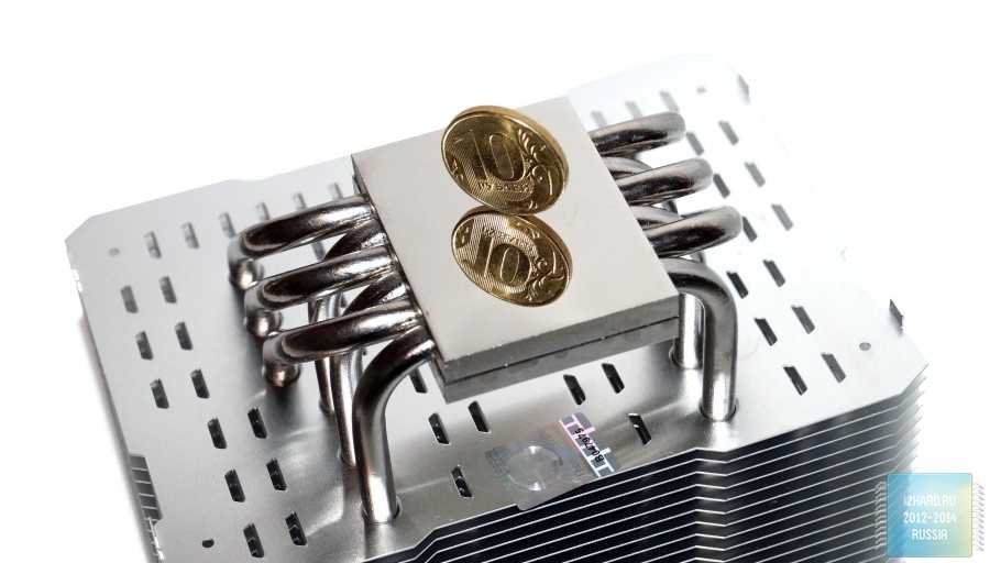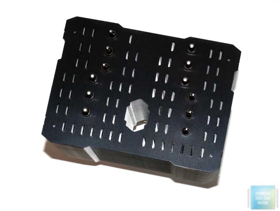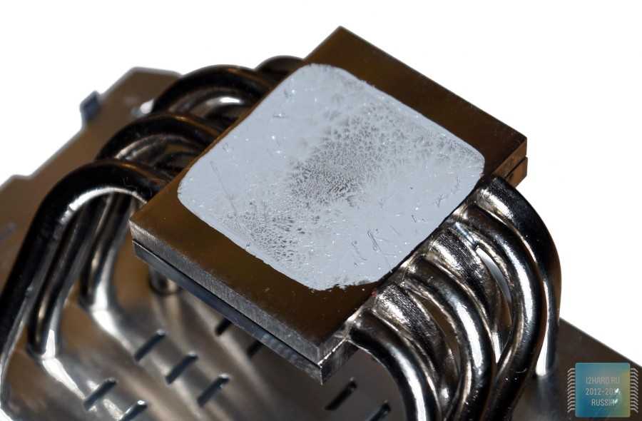 Основание покрыто никелированным напылением, поэтому имеет зеркальное отражение. Теплотрубки зажаты между двумя пластинами основания и пропаяны для обеспечения наилучшего контакта.