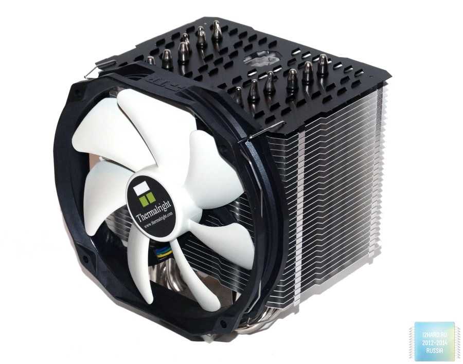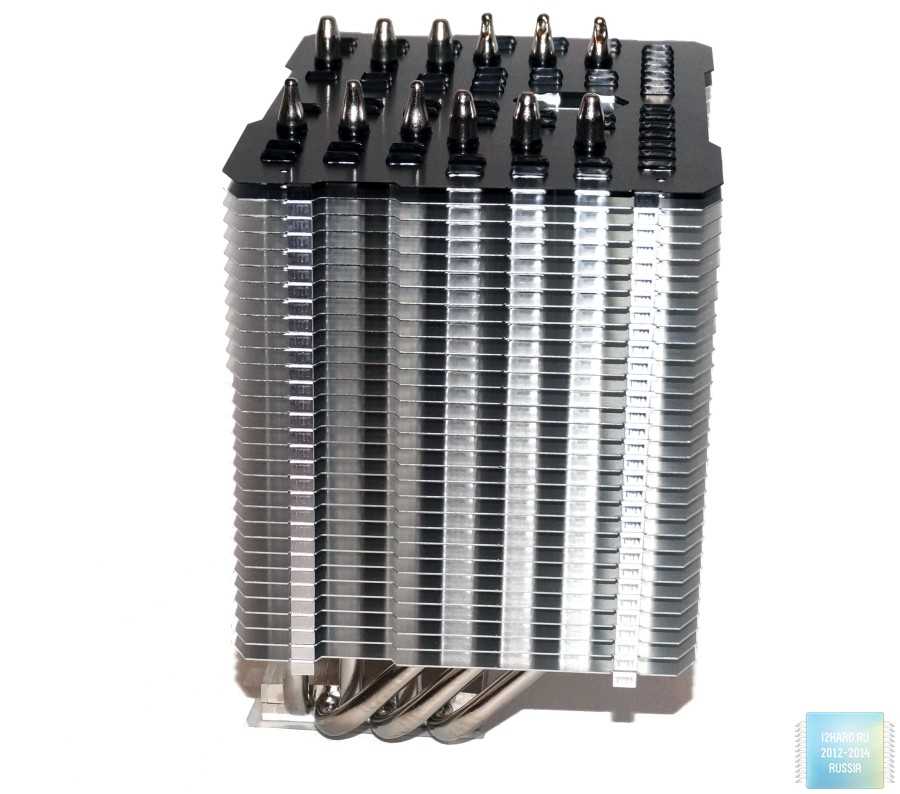 Восемь тепловых трубок, огромный вес разделенного на две части радиатора и два больших кулера способны охладить пыл самого мощного процессора в экстремальном разгоне.
