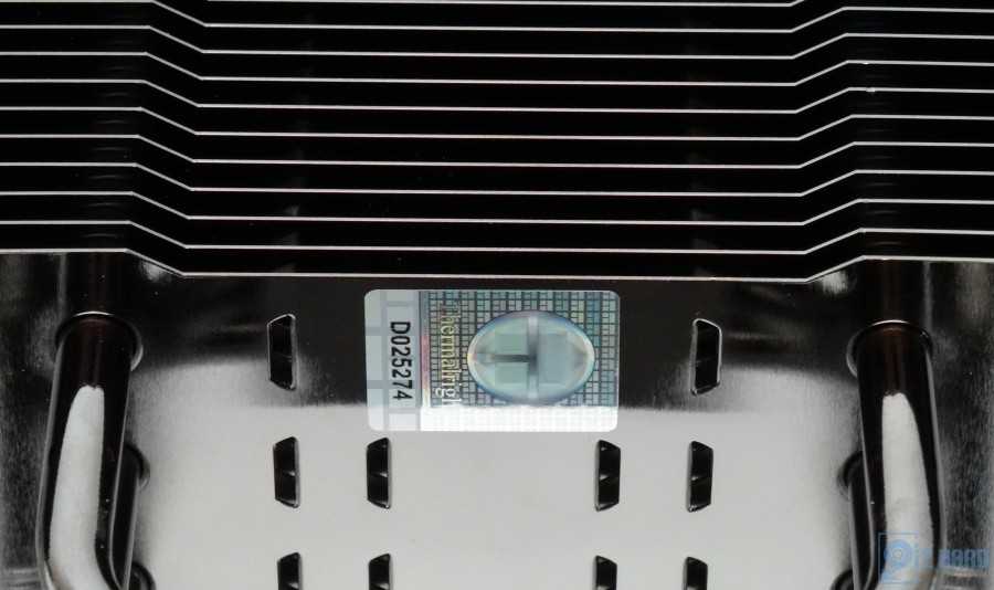 Голографическая наклейка на радиаторе системы охлаждения находится на самой нижней пластине и несет информацию о серийном номере кулера.