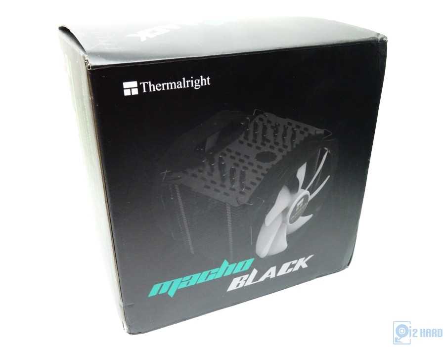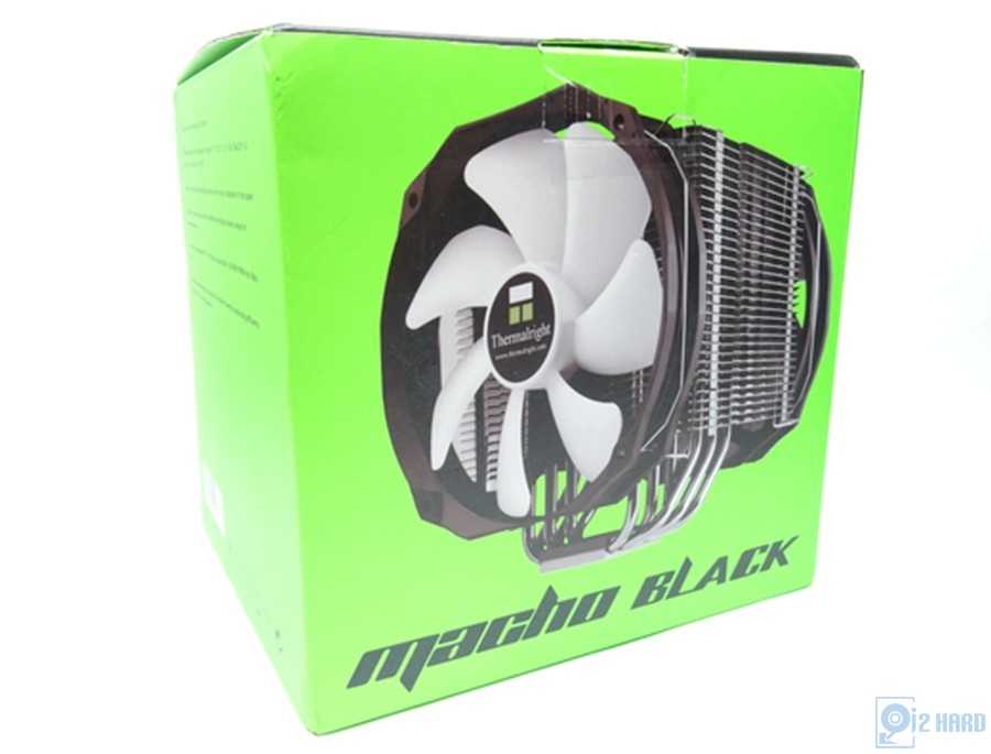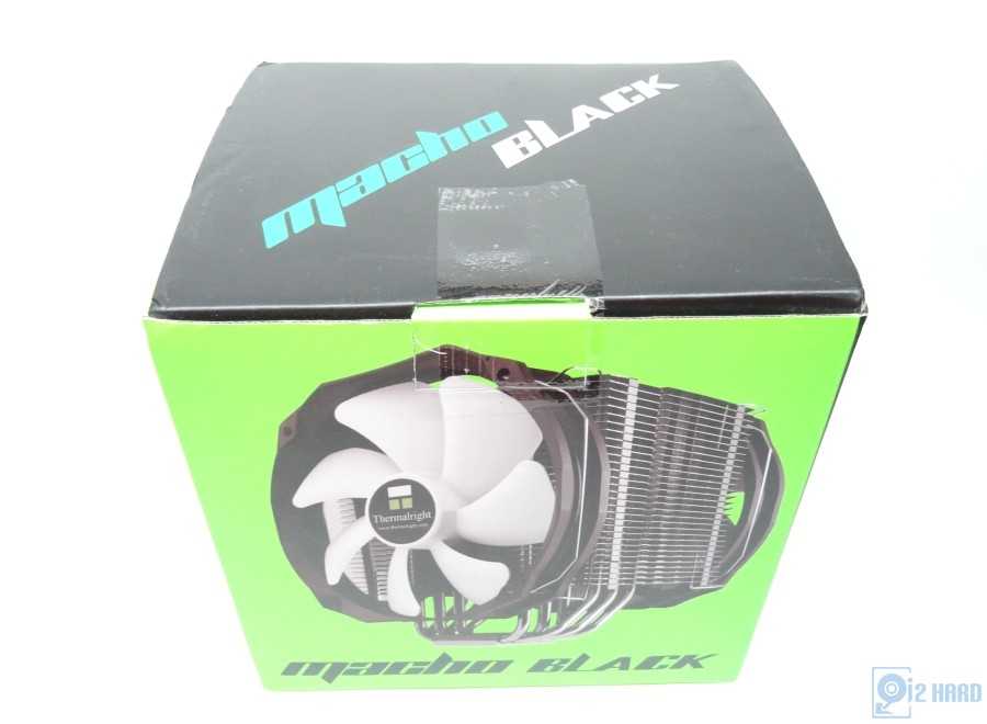 Упаковка кулера Macho Black изготовлена из картона и оформлена достаточно смело, ярко зеленый цвет прекрасно гармонирует с черным. C обеих сторон коробки есть изображение кулера.