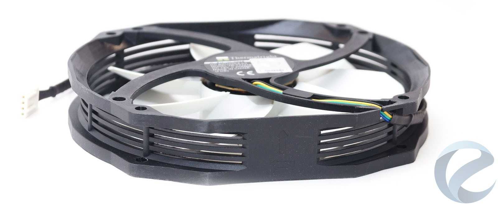 Двигатель вентилятора с PWM контролем оборотов от 300 до 1300 RPM. Вентилятор очень тихий за счет использования гидродинамического подшипника Fluid Dynamic Bearing (FDB).