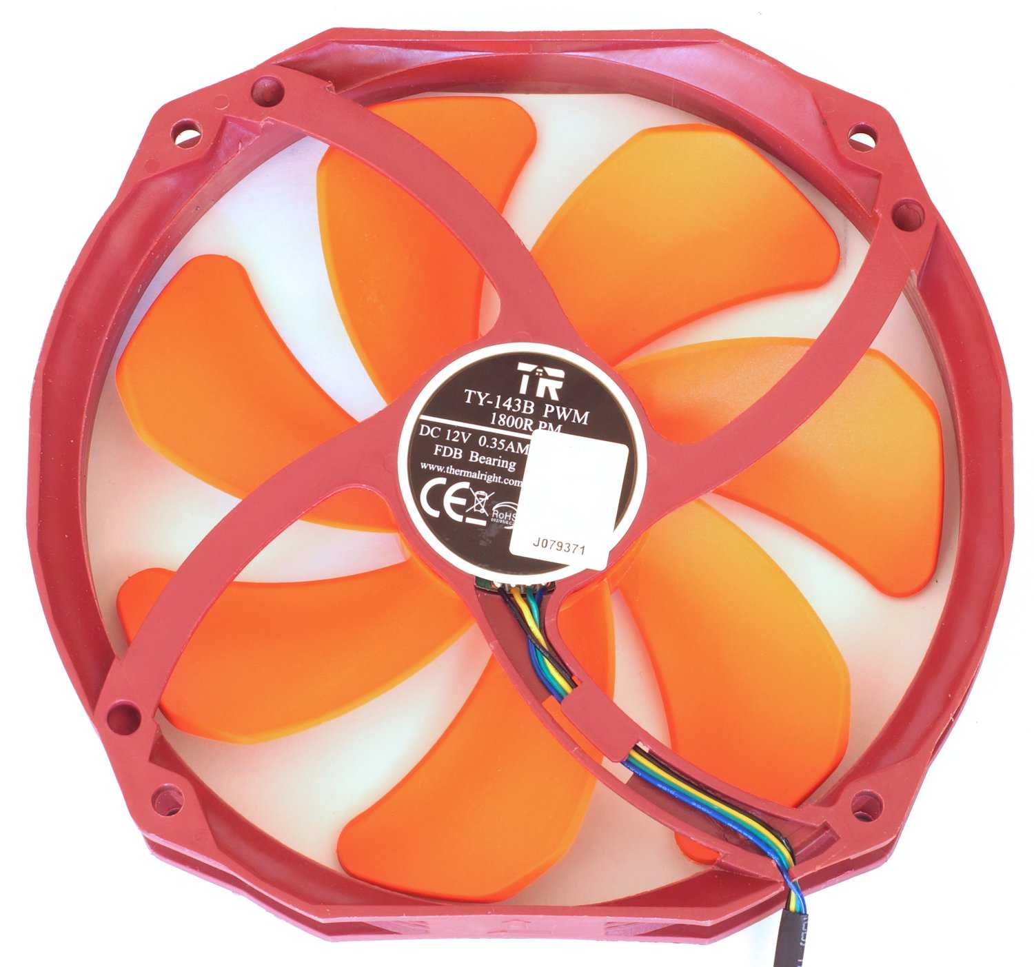 Поставляется кулер с одним 140 мм вентилятором Thermalright TY-143B, выделяющимся внешним видом и поддерживающим режим управления PWM. Стоит отметить, что он производительный (обороты до 1800 rpm, воздушный поток до 90.96 CFM), поэтому мечтать о тихой работе не приходится.