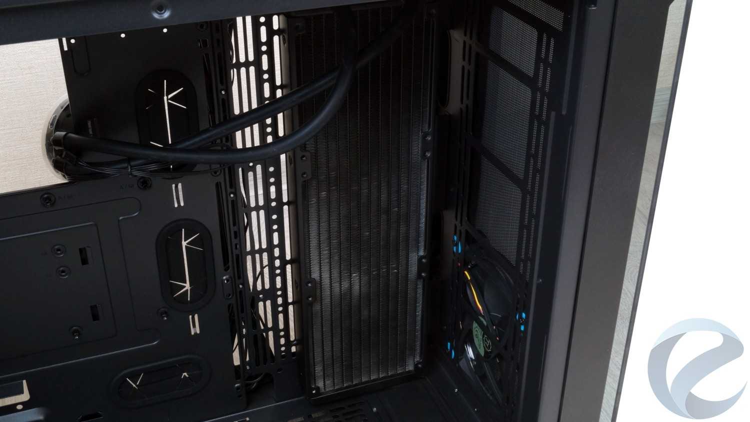 - Прекрасный вариант для установки кастомной системы жидкостного охлаждения, вмещающий длинные теплообменники (до 420 мм);