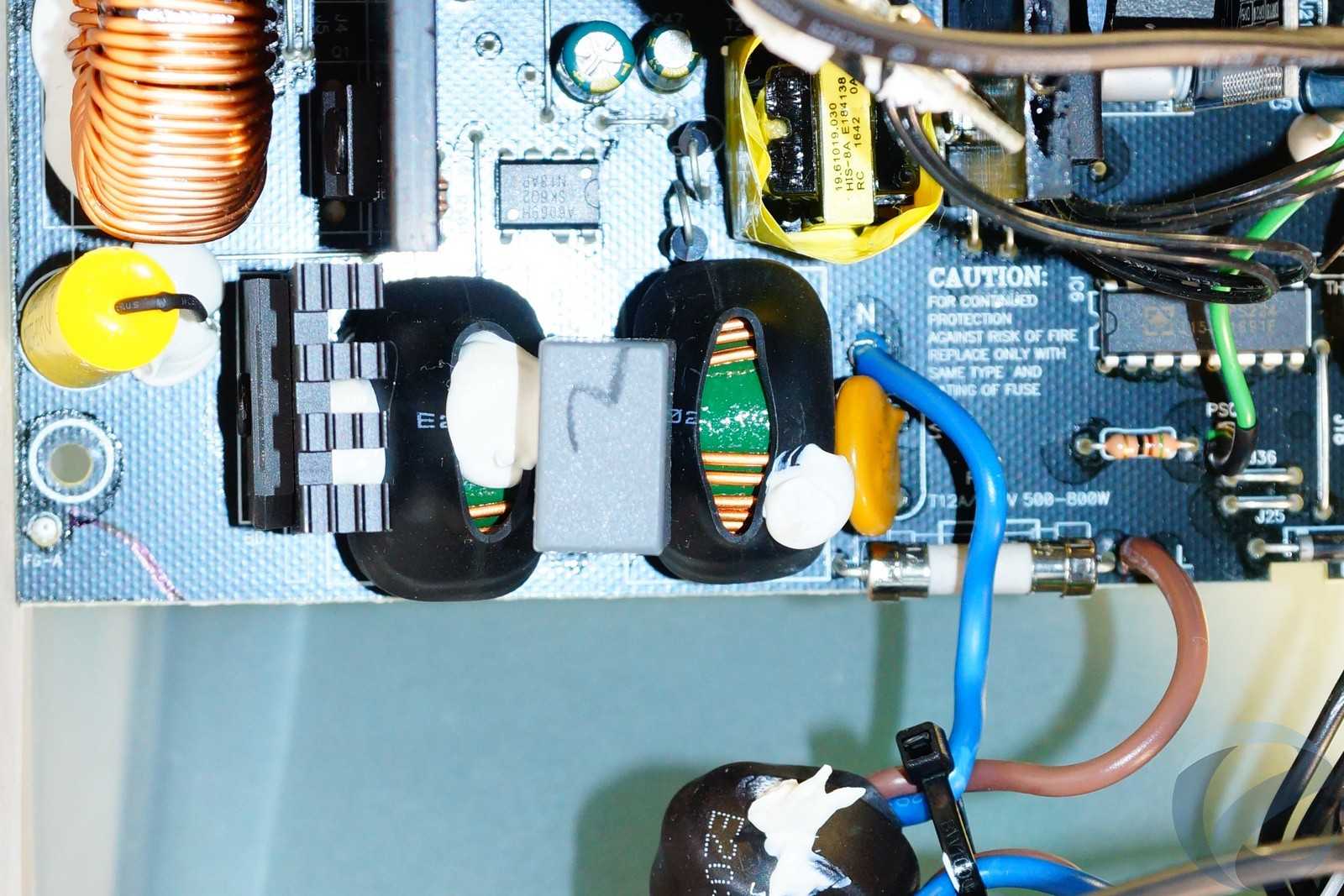 В целом — это очень качественный источник питанияс хорошей стабилизацией напряжений и надежными комплектующими. Важный момент – реализация DC-DC преобразователя во вторичной цепии японский высоковольтный сглаживающий конденсатор.