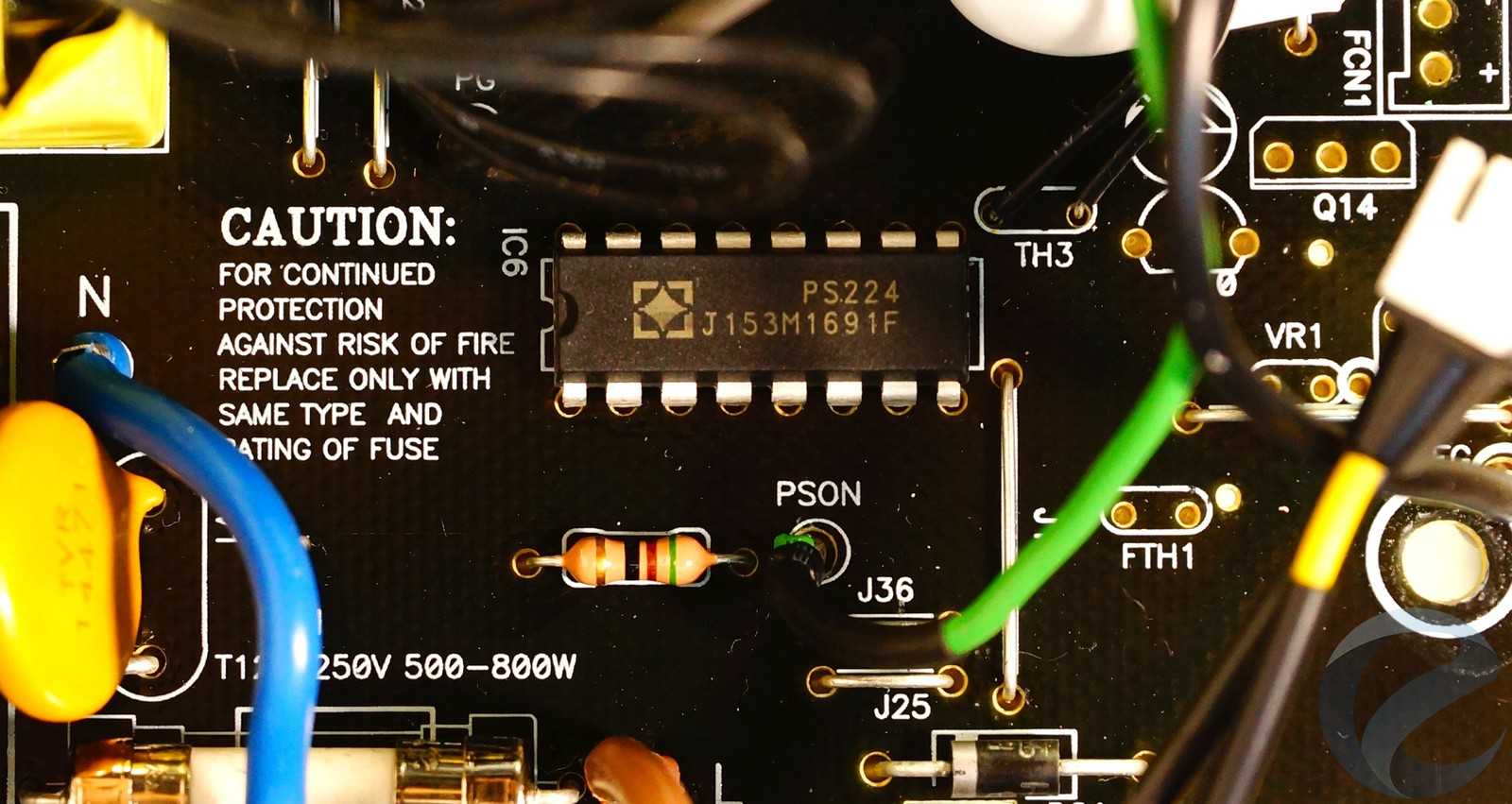 За все виды защиты отвечает микросхема PS223. Заявлена защита от перенапряжения, от сверхтоков, от короткого замыкания и от превышения мощности.