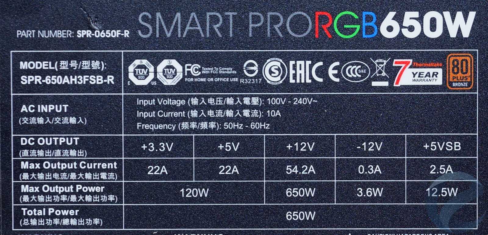 Блок питания Thermaltake Smart Pro RGB 650W Bronze Fully Modular оставляет неоднозначное впечатление.