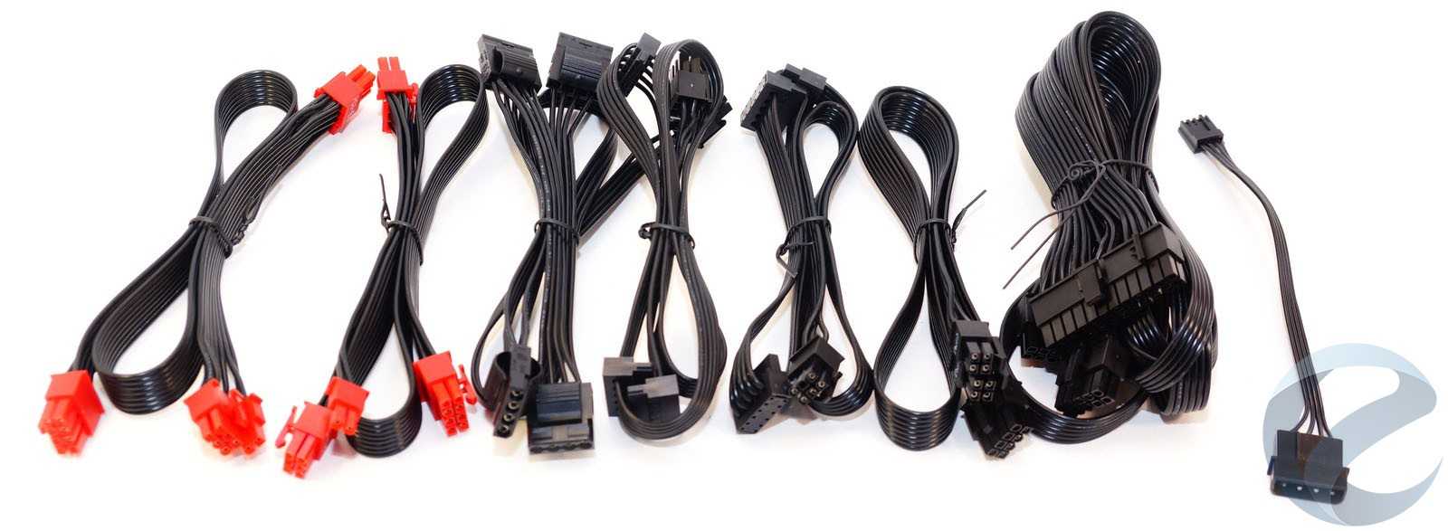 Все кабели плоские, довольно мягкие и окрашены в черный цвет; калибр — 18AWG и 16AWG. Коннектор основного кабеля не разборный, коннектор питания CPU 4+4 без защелок.