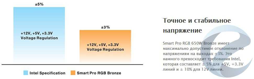 - соответствие стандарту 80 PLUS Bronze с большим отрывом в плюс;
