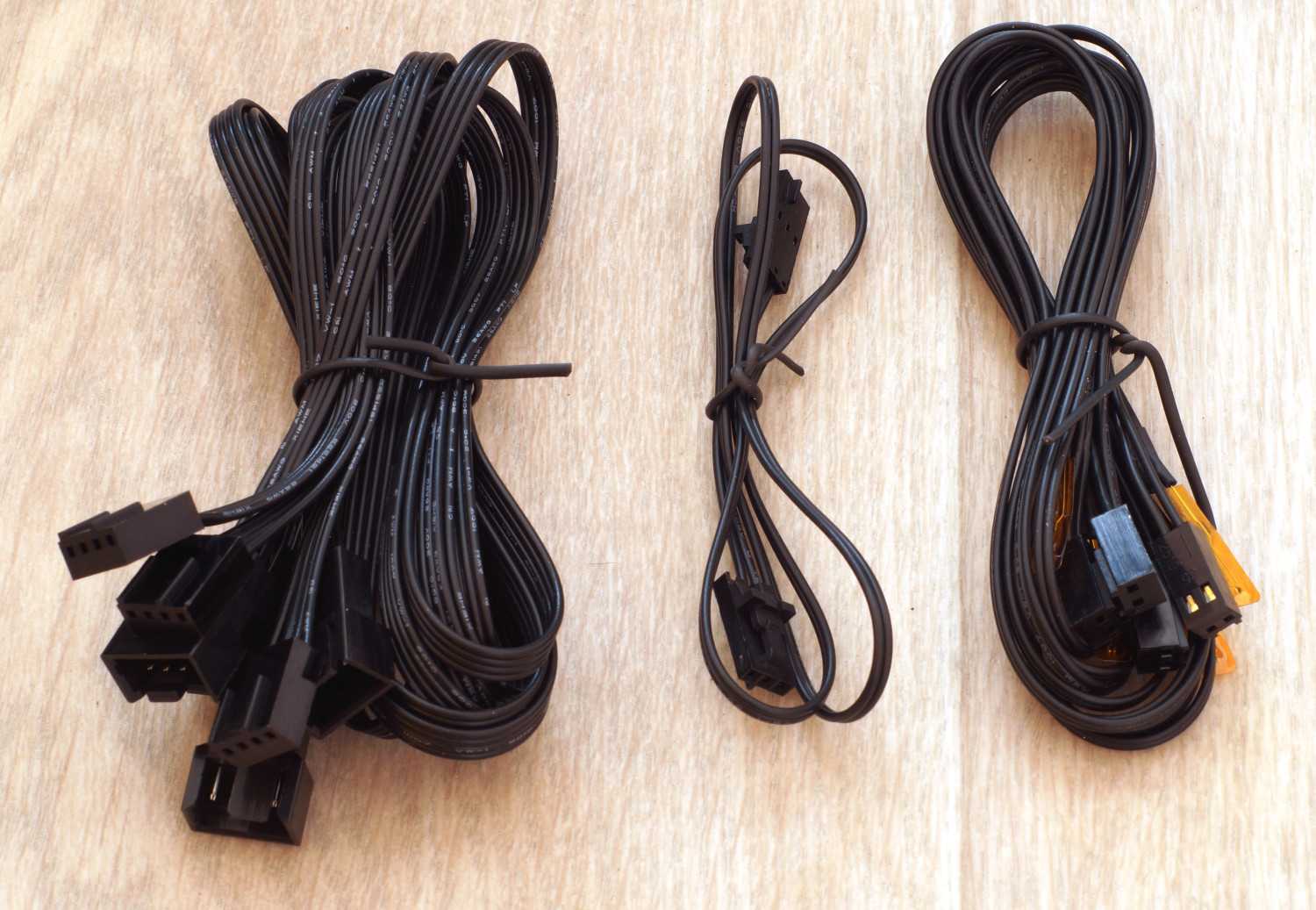 Приятный момент — комплектация находится в двух коробках. Одна содержит кабели для подключения вентиляторов, датчики температуры, вторая — одноразовые и многоразовые стяжки, набор винтов для установки вентилятора и комплектующих.