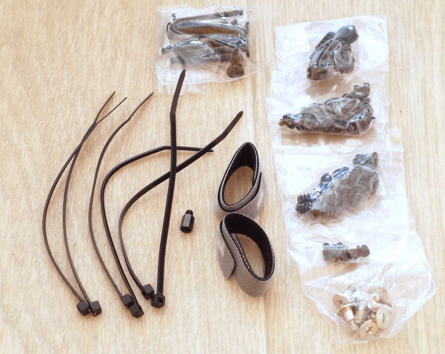 Комплект поставки включает очень краткий информационный листок, а также пластиковые мешочки с различными аксессуарами для монтажа, несколько кабельных затяжек и переходник для подключения портов USB к обычному разъёму USB 2.0 на материнской плате.