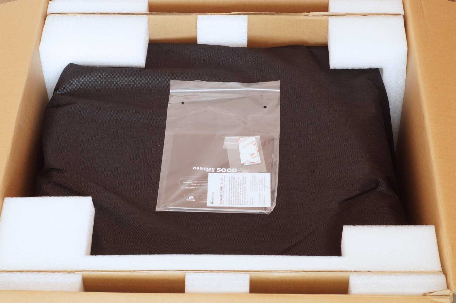 Corsair used the «typical» inner packaging with the use of a plastic liner and Styrofoam end caps, but they didn’t stop there. To help protect the aluminum front and the side ventilation panel, there are two pieces of thick cardboard inserted. You will see soon enough that it resulted in a perfect sample being delivered to me.