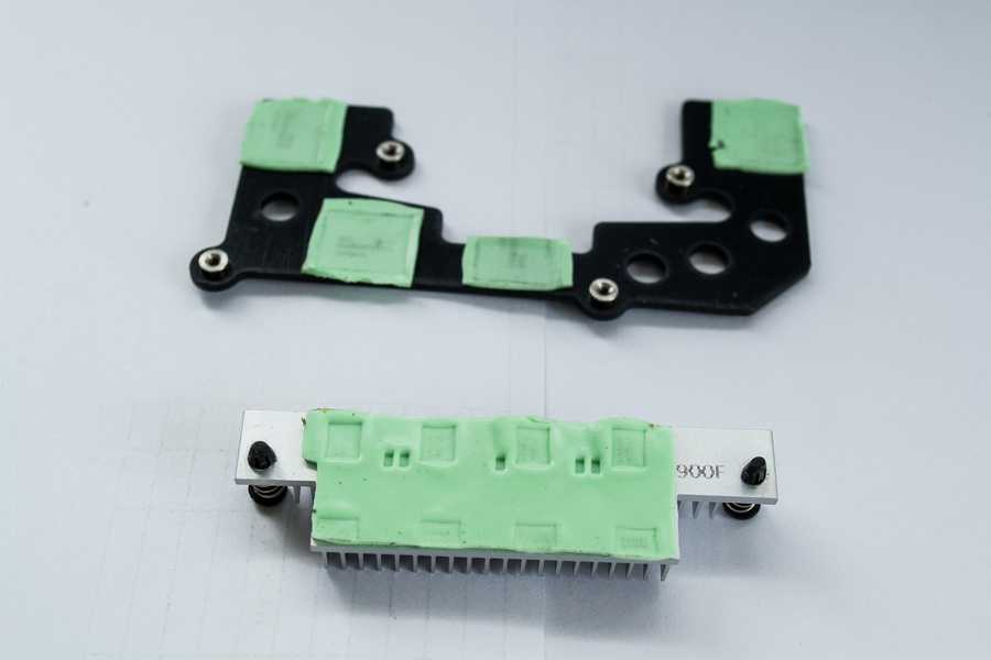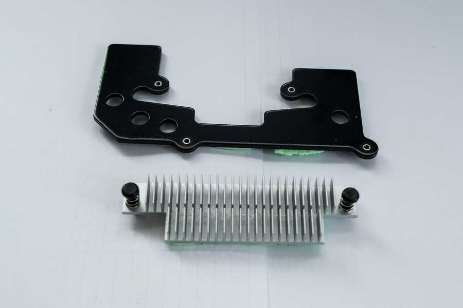 Кроме основного присутствуют два небольших радиатора: один из них охлаждает четыре чипа памяти, другой отводит тепло с VRM.
