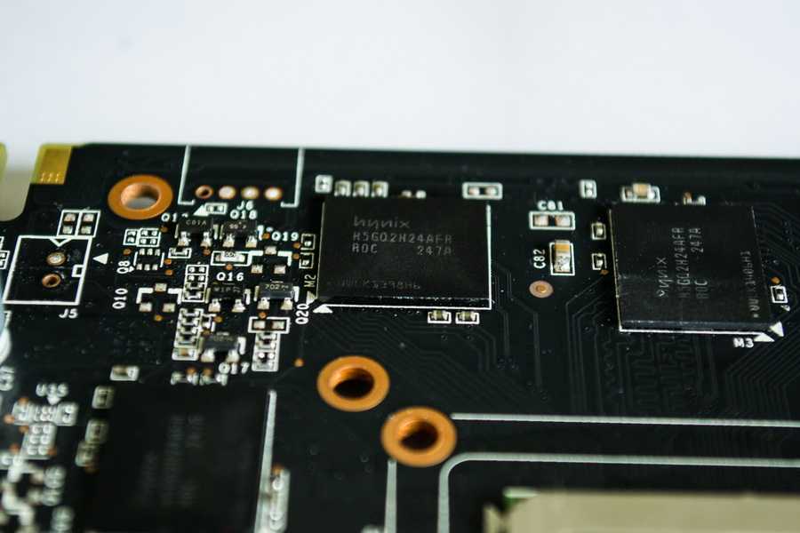 Чипы используются H5GQ2H24AFR-R0C от Hynix, каждый по 256 МБ памяти. Всего их восемь, что в сумме дает 2048 МБ.