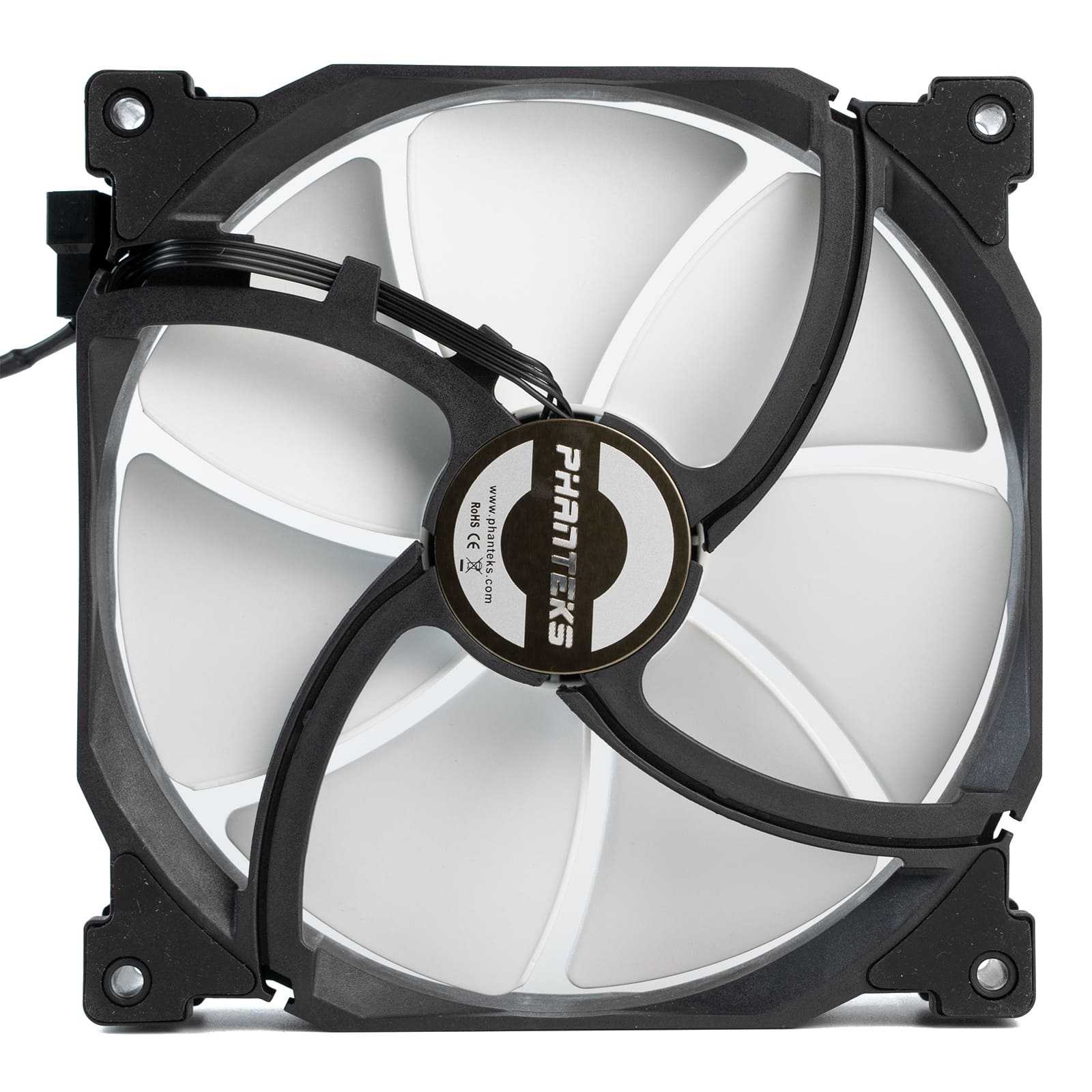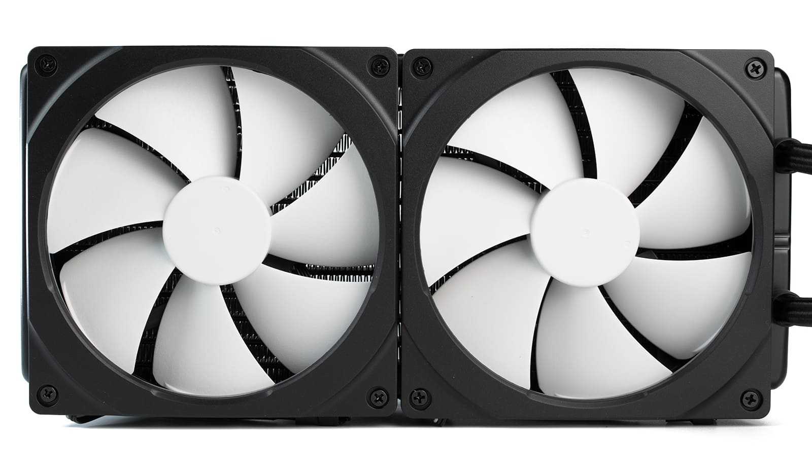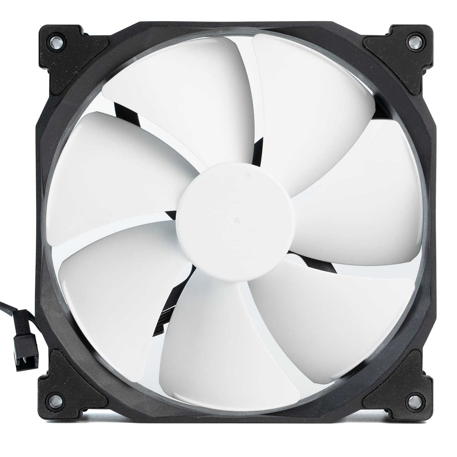 Модель имеет 7 лопастей большой площади, оптимизированных для увеличения статического давления. Оба вентилятора имеют по углам резиновые проставки для снижения вибраций. Кабели питания можно объединить в цепь и подключить к одному разъему на материнской плате, что положительно сказывается на аккуратности сборки, избавляя пользователя от лишних забот по укладыванию полуметровых “кос” проводов.