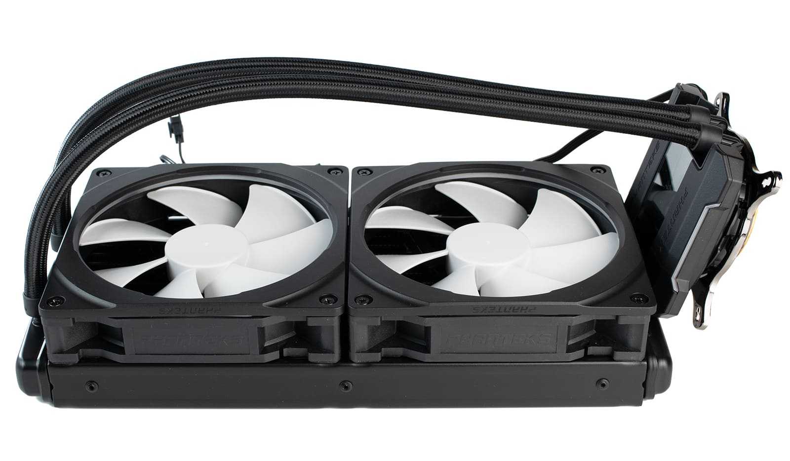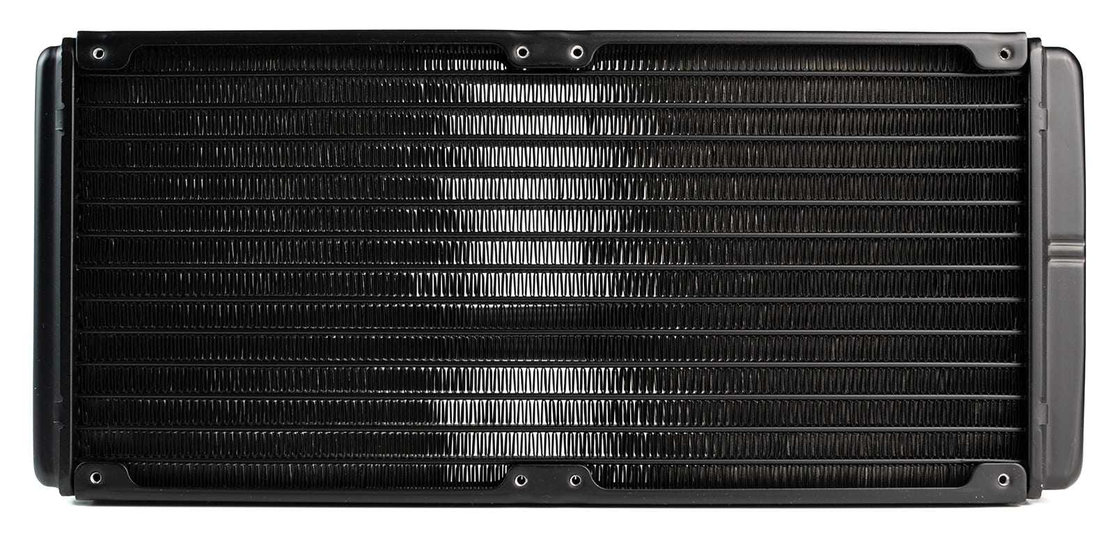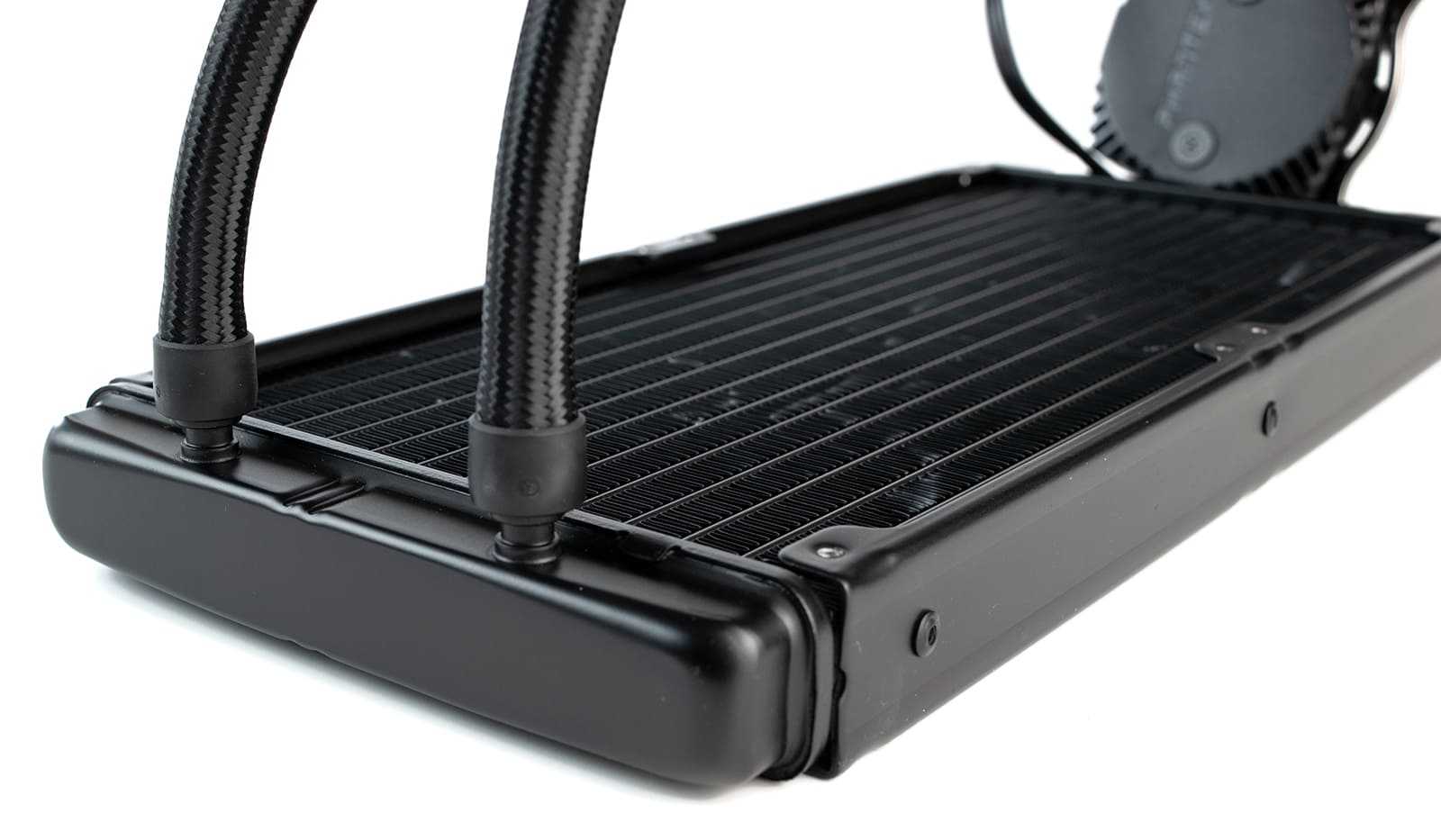 Рассматриваемая нами модель системы охлаждения оснащается 280 мм алюминиевым радиатором, окрашенным в черный цвет. В данной линейки производитель представил также модели на 240 и 360 мм.