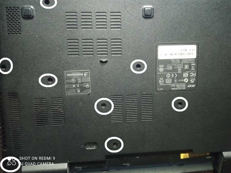 Дальше откручиваем все винты с задней крышки. Как мы уже писали выше, на этом ноутбуке нет технологических съемных панелей для быстрого извлечения жёсткого диска или оперативной памяти. Поэтому придется откручивать всё: