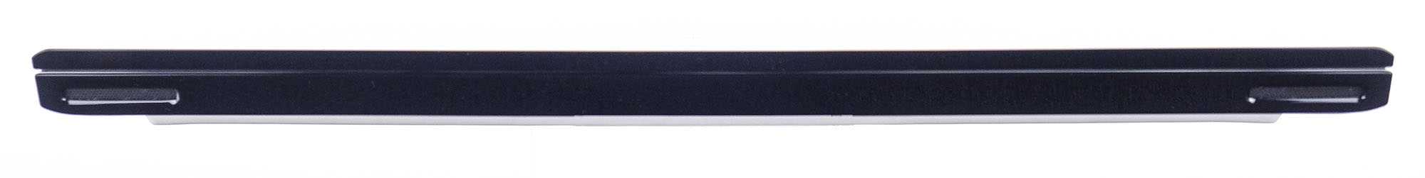 На нижней панели закреплены две длинные резиновые ножки вдоль периметра и занимающая большую площадь решётка для забора воздуха системой охлаждения.