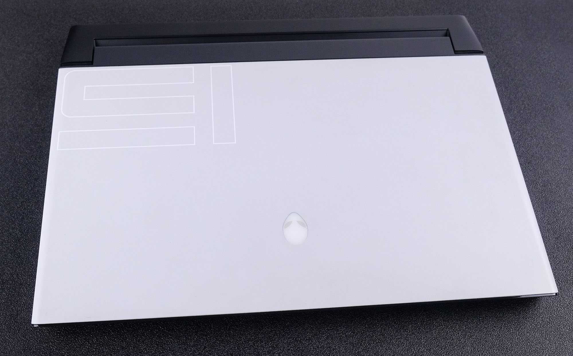На крышке есть геометрический узор и логотип Alienware, который подсвечивается. Её можно без проблем открыть одной рукой – форма переднего торца корпуса скошенная, так что крышку легко подцепить.