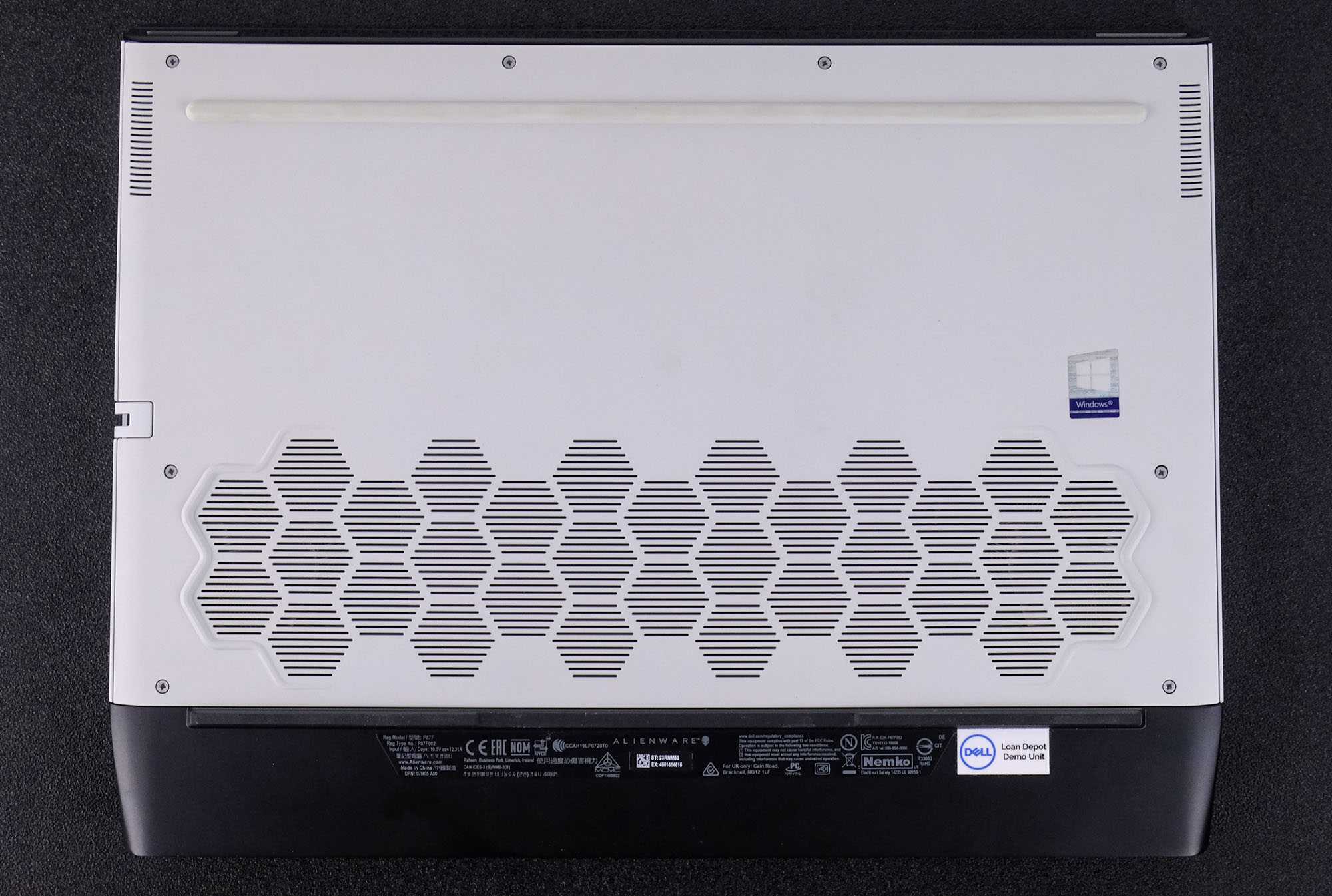 Нам нравятся тонкие и не очень тонкие акценты стиля X17 R1. Например, большие вентиляционные отверстия сотового типа расположены по всему корпусу — вокруг клавиатуры и над ней, по бокам корпуса и сзади — и, безусловно, помогают поддерживать нормальную работу машины во время игр. Однако они, конечно, не помогают с шумом в режиме производительности — но об этом позже.