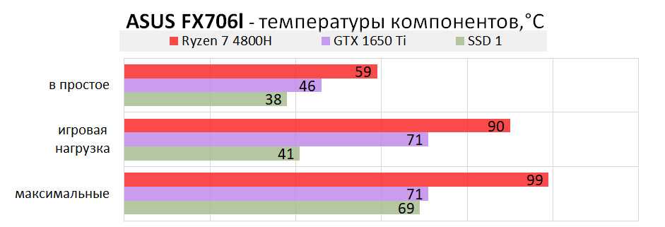 Что касается общей оценки, то ASUS TUF FX706l – это бюджетный игровой ноутбук 17”, рассчитанный на массового потребителя и обладающий весьма заманчивыми преимуществами. Здесь установлен очень мощный для этого сегмента многоядерный процессор Ryzen 7 4800H, хорошо подходящий как для игр, так и для рабочих задач – обработки звука, видео, графики. Его многоядерная производительность при невысокой цене сравнима с топовыми мобильными процессорами Intel.