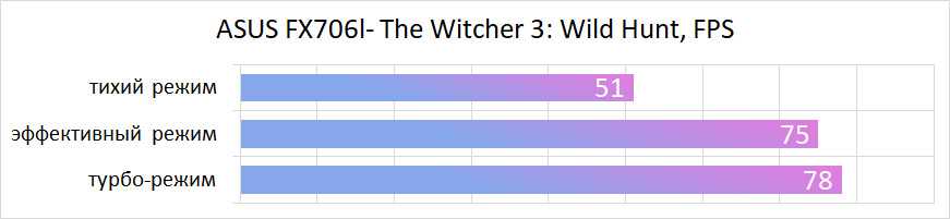 Отличаются режимы настройками частот и профилем оборотов вентиляторов. Все тесты производительности ASUS FX706l были проведены в режиме турбо для наилучшего раскрытия потенциала ноутбука. Также будет проведено сравнение производительности в разных режимах.