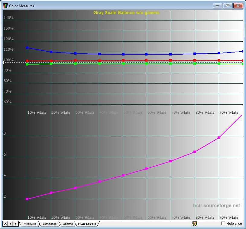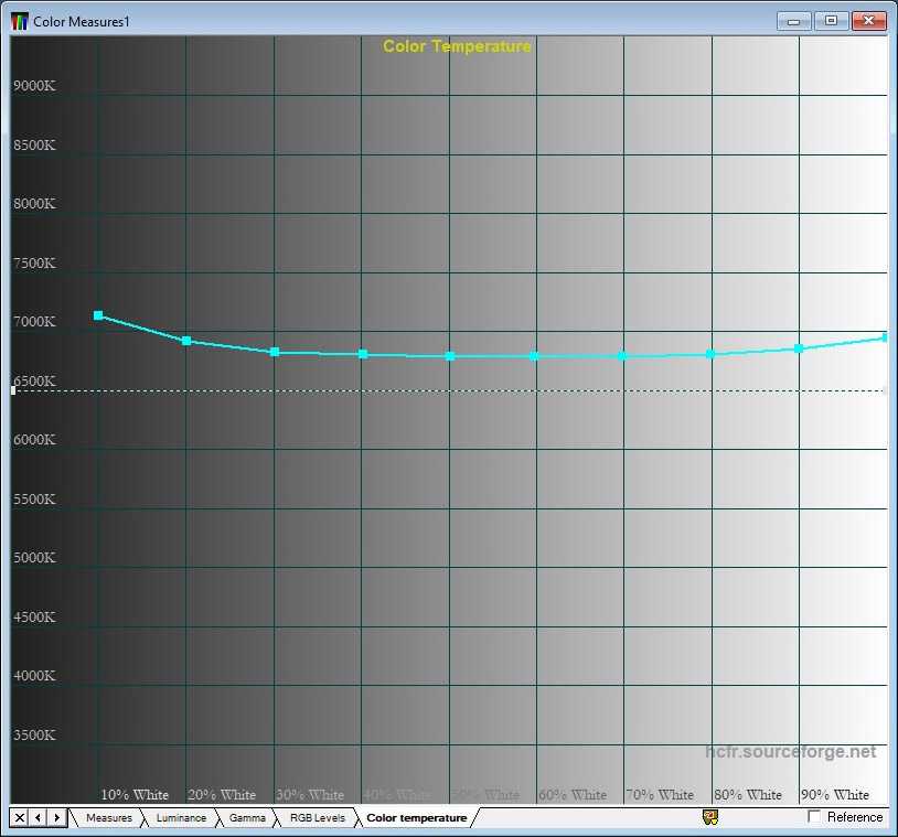 Баланс цветов RGB в режиме по умолчанию вполне сносный, а цветовая температура держится в среднем на почти идеальном уровне около 6800 К.