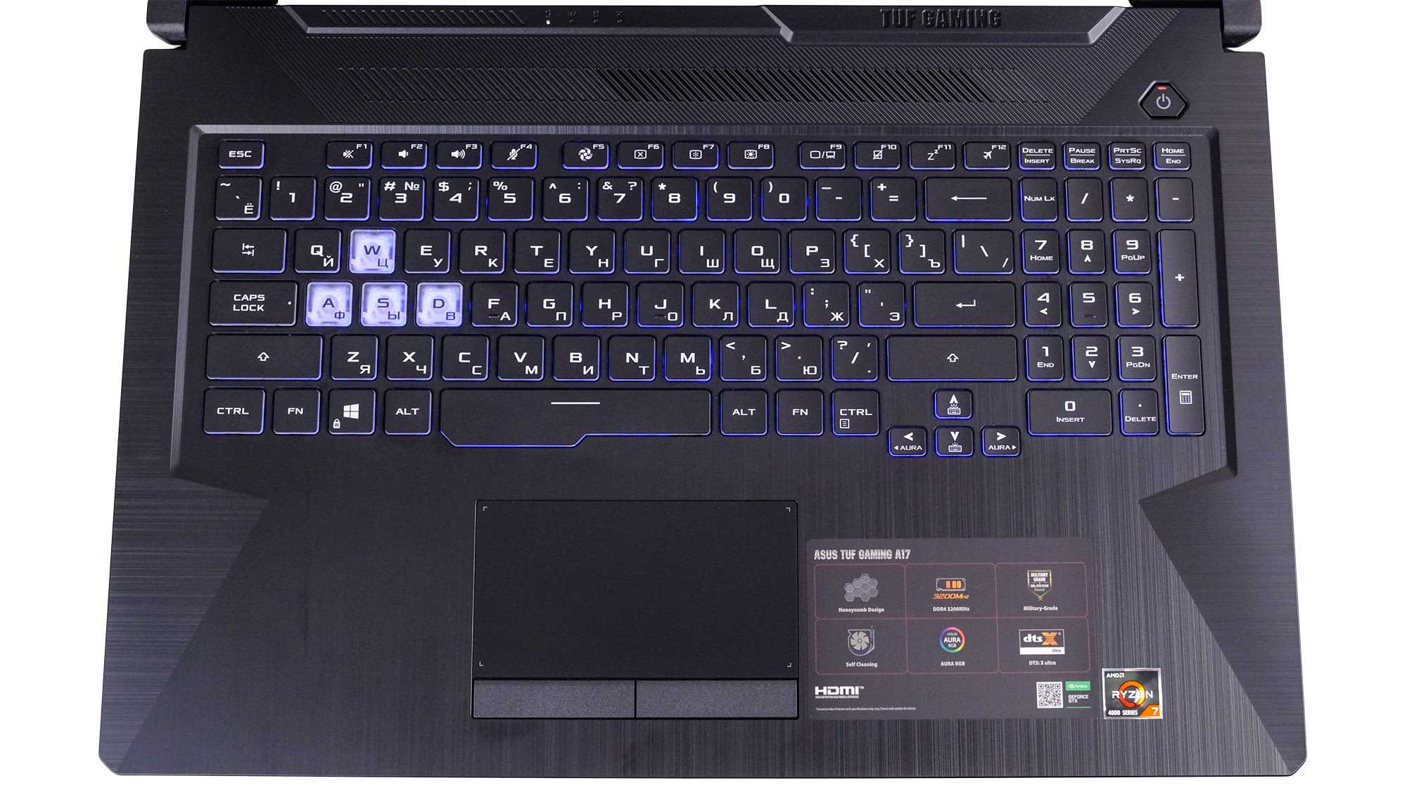 Стоит понимать, что в рамках модели TUF Gaming A17 есть выбор по конфигурациям. Кроме GTX 1650 Ti, есть вариант с GTX 1660 Ti, которая уже существенно мощнее. Соответственно, такую видеокарту скорее можно отнести уже к среднему уровню игровой производительности для ноутбуков, что увеличит и стоимость модели по сравнению со совсем недорогим вариантом с GTX 1650 Ti. А тем, кому важен размер ноутбука, советуем присмотреться к аналогичным конфигурациям в форм-факторе 15,6″ — ASUS TUF Gaming A15.