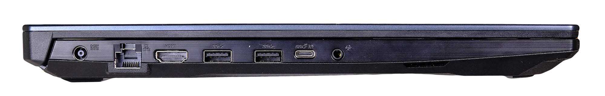 Из разъёмов на корпусе с левой стороны сосредоточено практически всё основное – питание, HDMI 2.0b, 2хUSB 3.2, USB-C 3.2 (c DP 1.4), RJ45 и комбинированный аудиопорт 3,5 мм.