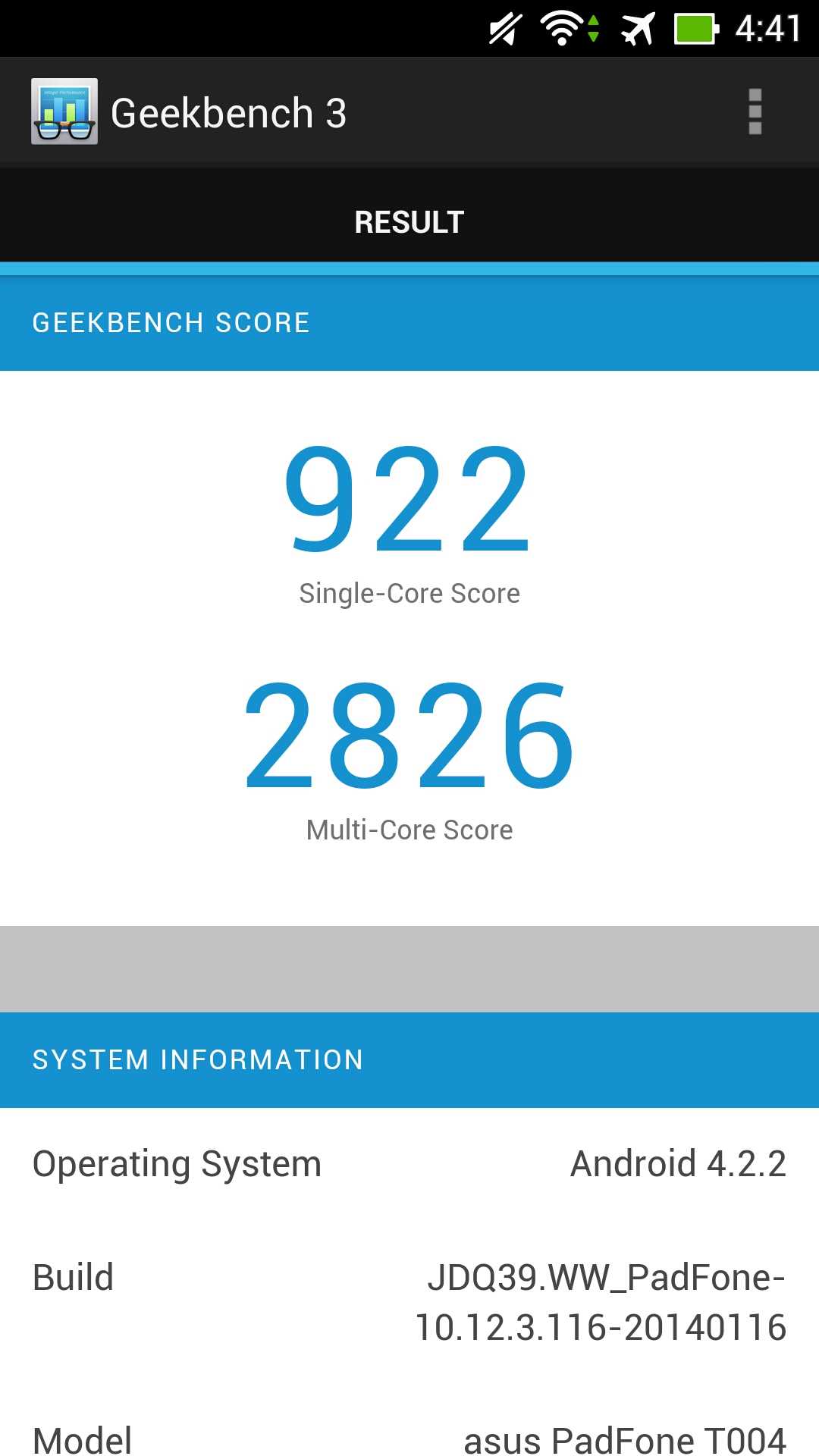 Результаты синтетических тестов показывают, что Asus PadFone Infinity способен без проблем справится с любыми приложениями и играми под операционную систему Android. Действительно, на практике смартфон без задержек справлялся с игровой графикой, воспроизведением видео высокого разрешения и просмотром «тяжелых» интернет-страниц. При полной нагрузке смартфон довольно ощутимо греется, хотя температура не достигает значения, при котором работать с ним стало бы некомфортно. При этом, по ощущениям, при установке в док-станцию, Asus PadFone Infinity начинает греться значительно сильнее, что может быть связано более высоким энергопотреблением большого экрана и менее эффективным отводом тепла.