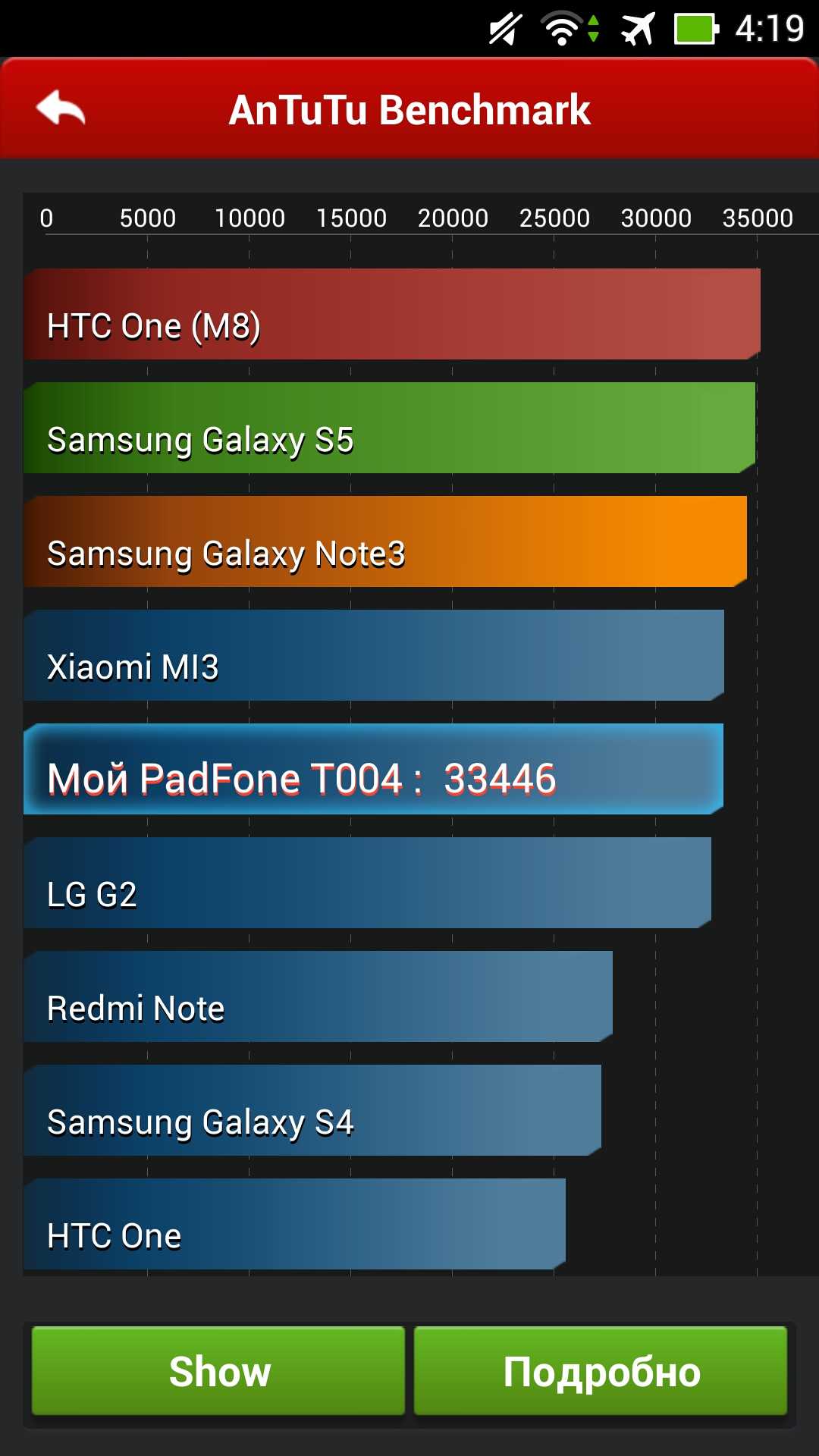 ASUS The New PadFone Infinity продается с двумя вариантами встроенной памяти – 16 и 32 Gb. Помимо этого присутствует разъем под MicroSD карты. Как и у любого устройства на семействе чипсетов Qualcomm, тут нельзя устанавливать приложения на MicroSD карту. Поэтому стоит заранее выбрать, сколько вам нужно для приложений. Правда, я так и не видел в продажи версии на 16 Gb, везде лежат на 32 Gb.