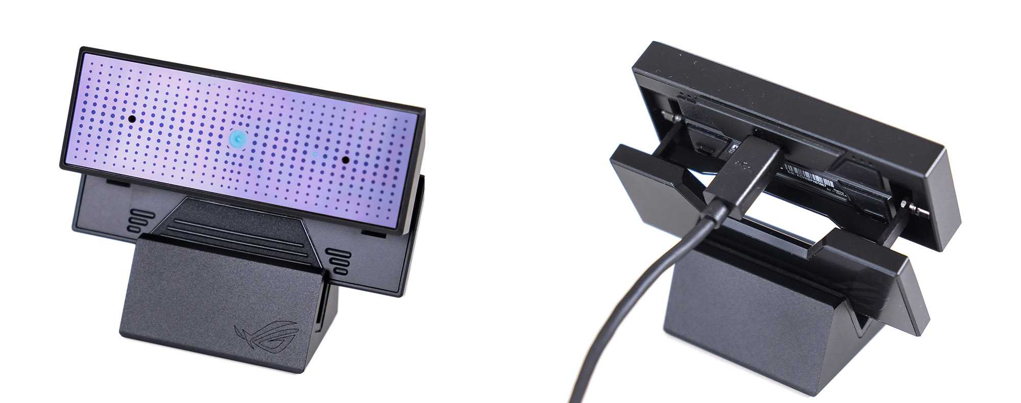 Рассмотрим отдельно аксессуары, идущие в комплекте вместе с ASUS ROG Scar 17 G732LXS и составляющие с ним единое целое. Поскольку встроенной камеры в крышке дисплея не предусмотрено, то потребуется внешняя, и в её качестве здесь выступает модель ROG Eye GC21, которая умеет транслировать видео 1080p со скоростью 60 к/с.
