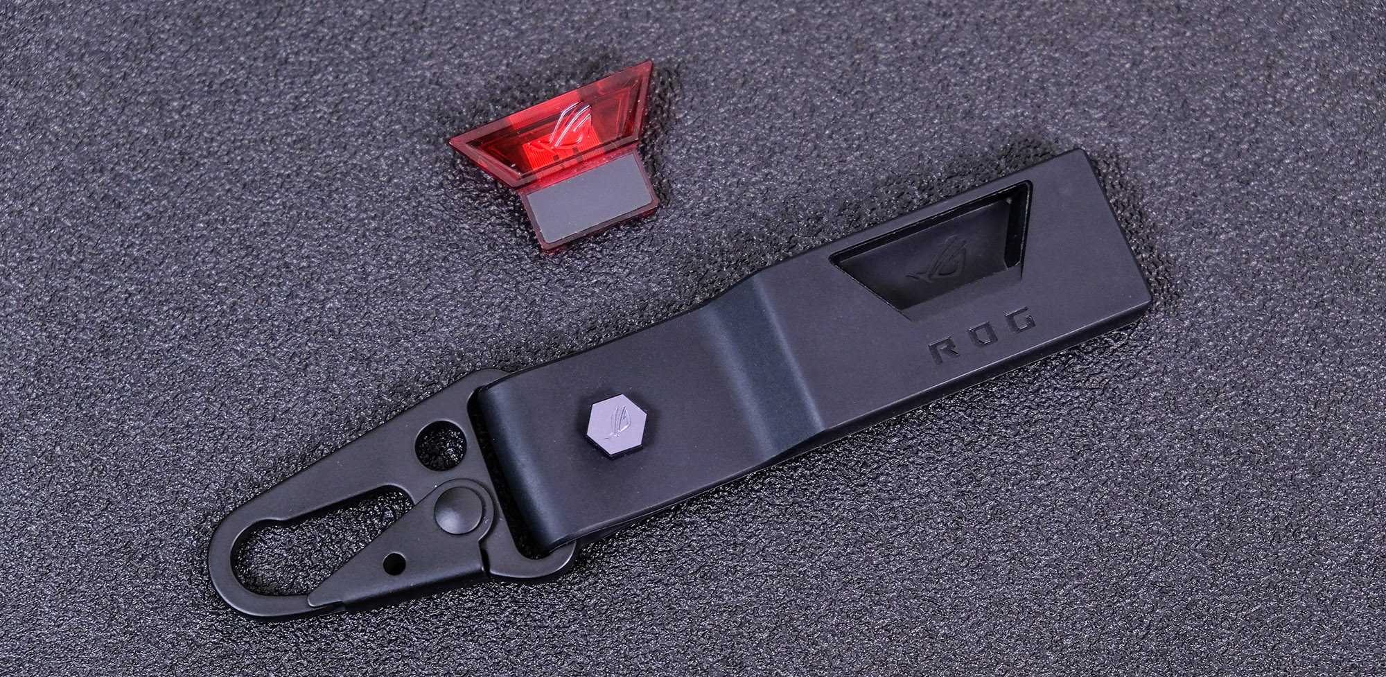 ощупь покрытием, напоминающим софт-тач. Играть или работать за ноутбуком будет удобно. В правой части рабочей области расположено место подключения «ключа» ROG Keystone II.