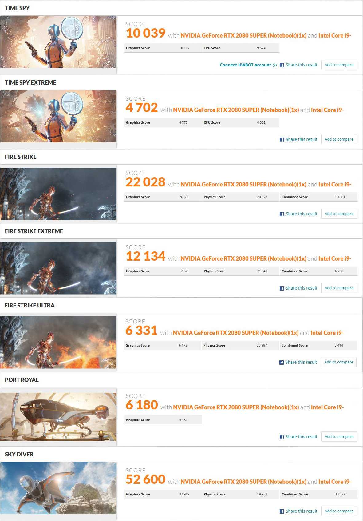 Полученные значения – достаточно высокие даже для настольных ПК, не говоря о ноутбуках. Правда, нельзя сказать, что они выше, чем у некоторых собратьев ROG Scar 17 с аналогичным видеоускорителем.