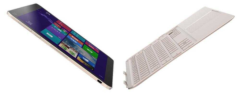 | · Операционная система:Windows8.1 (32-разрядная версия) · 8,9-дюймовыйIPS-дисплейWXGA(1280×800 пикселей) · Четырехъядерный процессорIntelAtomZ3775 · Накопитель:32/64ГБeMMC · Габариты: 241×137,5×7,5/16,5 мм (планшет/с док-станцией) · Вес: 0,40 кг (планшет) 0,75 кг (с док-станцией) |
