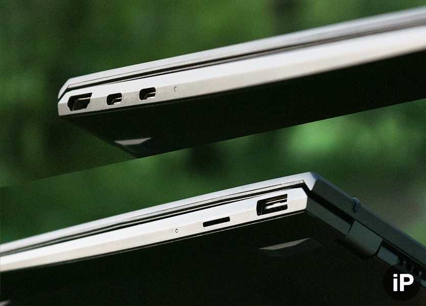 Пусть грани тонкие, но инженеры всё равно нашли способ встроить набор полезных разъёмов: USB-A, два USB-C с поддержкой зарядки, HDMI и слот для micro-SD.
