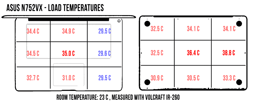 There’s only a 48 Wh battery on this laptop, which seems to be a trend for Asus lately: make lighter devices by sacrificing battery life, something I’m not at all happy with. They had a 56 Wh battery on the N751 and a 69 Wh battery on the N750.