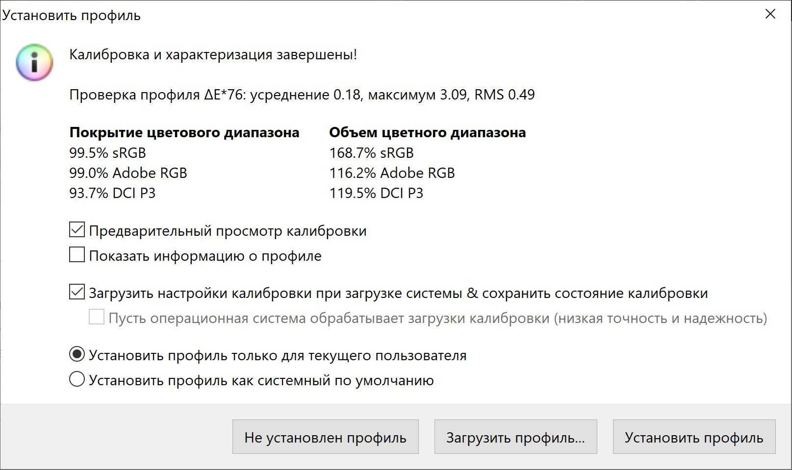 Цветовой охват соответствует заявленному – почти 100% sRGB и AdobeRGB. Это подтверждает применение качественной IPS-матрицы.