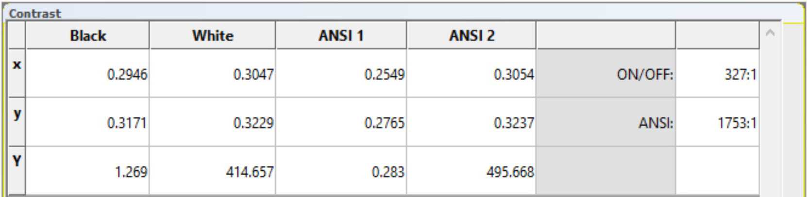 Контрастность дисплея вполне соответствует заявленной производителем, и даже чуть больше – 1753:1 ANSI.
