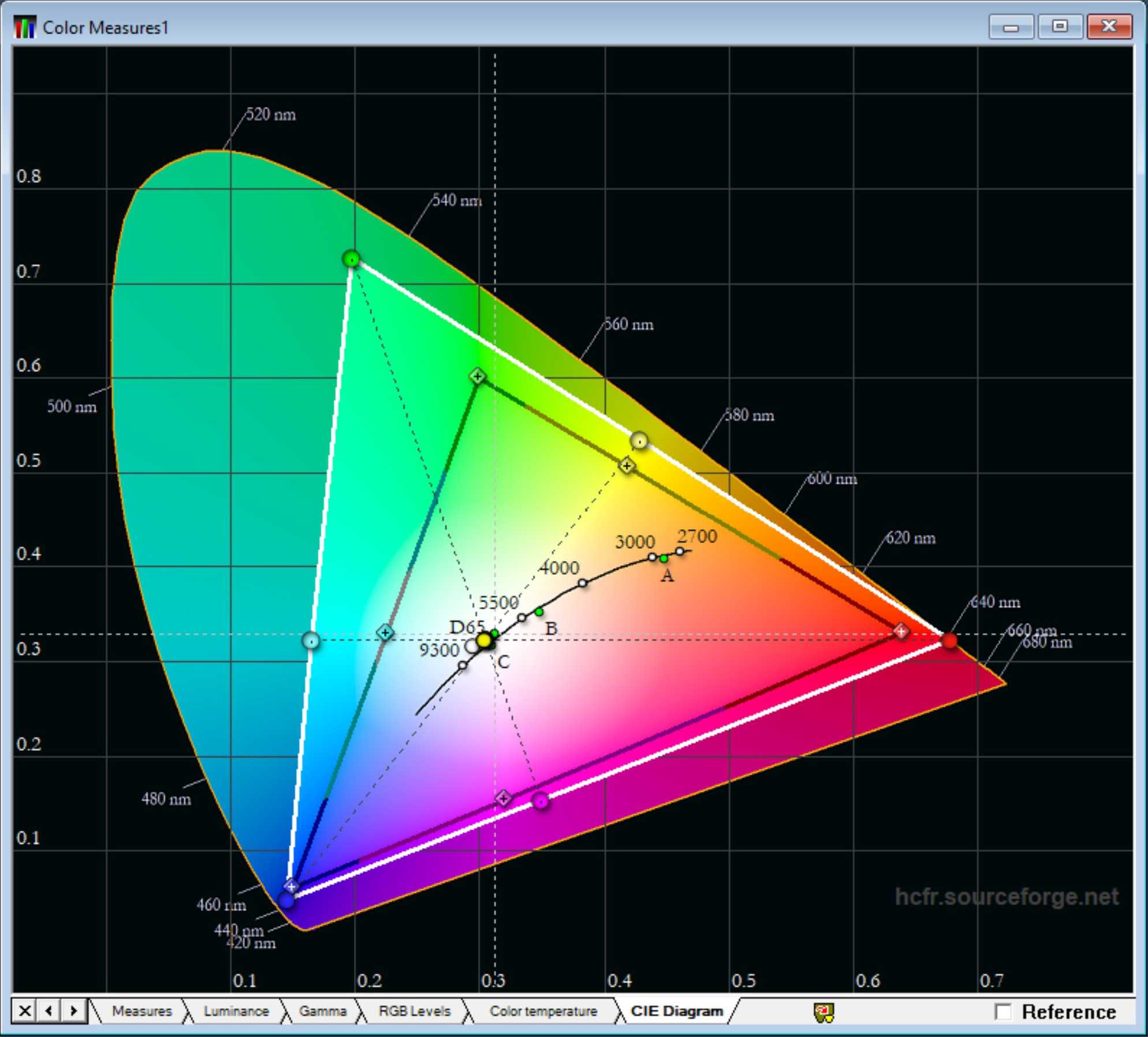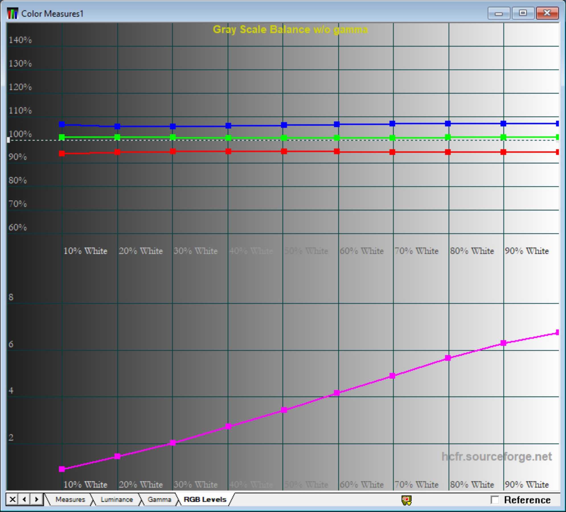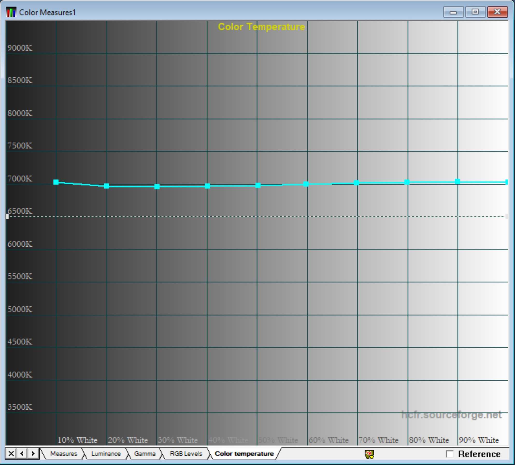 Баланс цветов RGB по умолчанию с завышенным синим и заваленным красным. Цветовая температура совсем немного выше эталонной – около 7000 K.