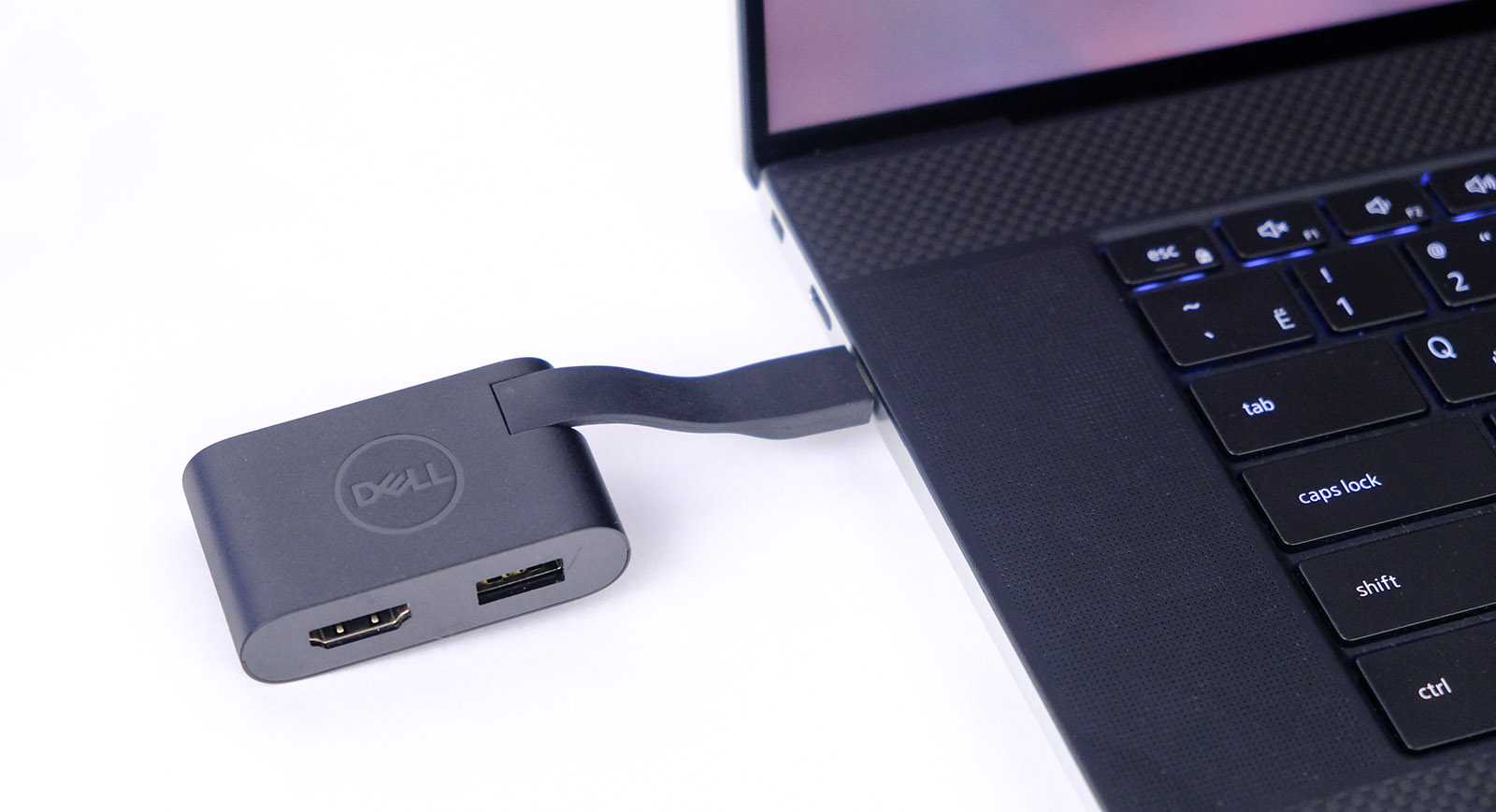 Для того, чтобы пользователи не сталкивались с проблемами при необходимости подключить к XPS 17 9700 что-то с интерфейсом USB-A, в коробку вложен компактный мини-адаптер. На нём есть как HDMI 2.0, так и заветный USB-A.