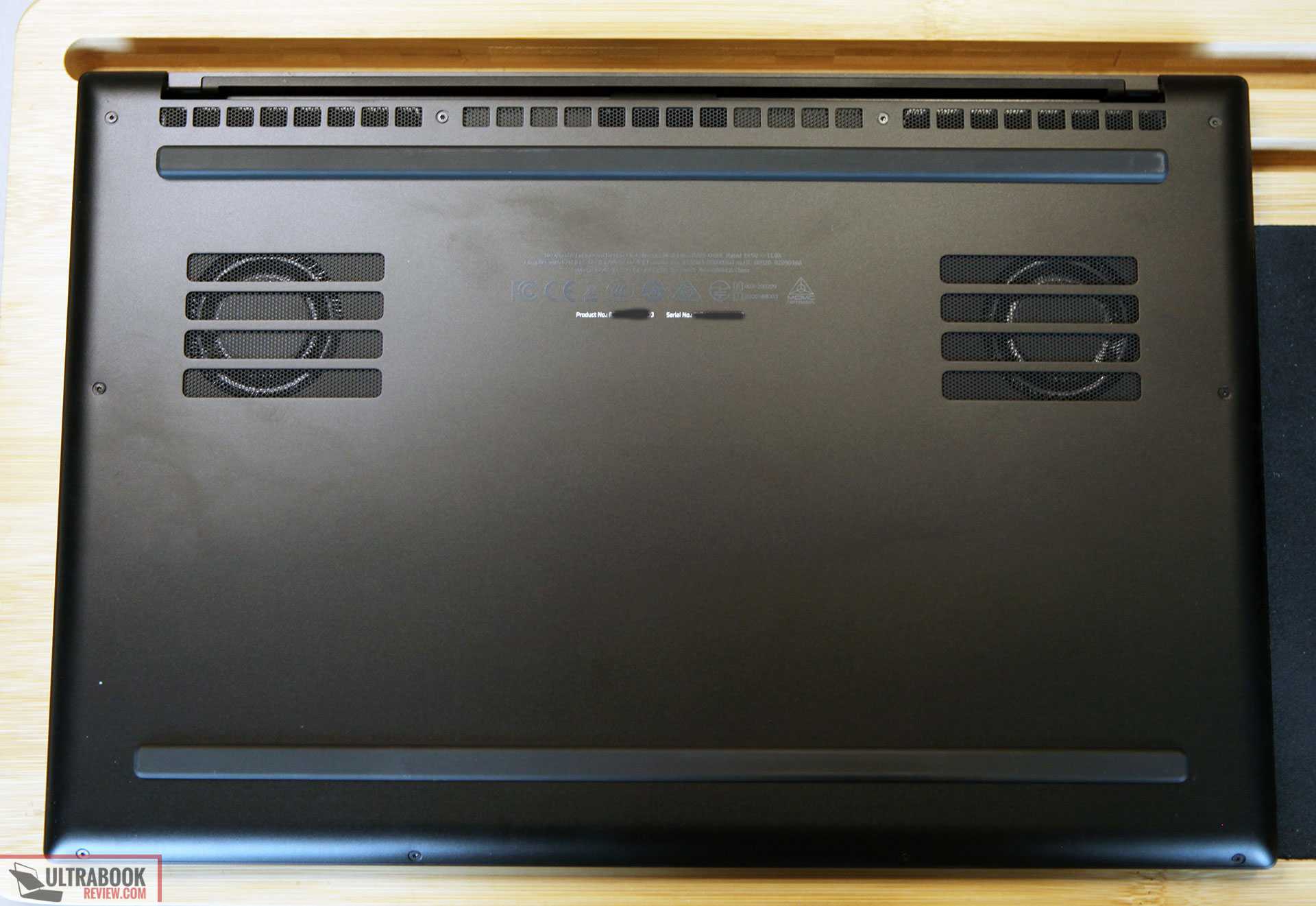 The bottom of the laptop is pretty much the same as the previous Razer Blade 15s. Long sturdy feet lift the laptop high enough for good air intake. The openings on the bottom plate are right on top of the fans. Finally, there are exhaust cutouts on the other side of the foot, right where the radiators are. It’s a good design and it seems to work well.